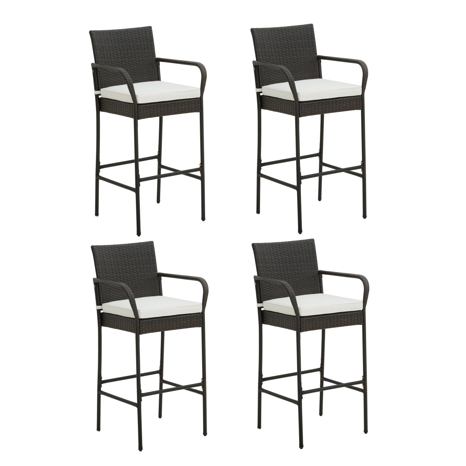 Set of 4 Patio Wicker Barstools PE Rattan with Armrests and Cushions-4 Pack
