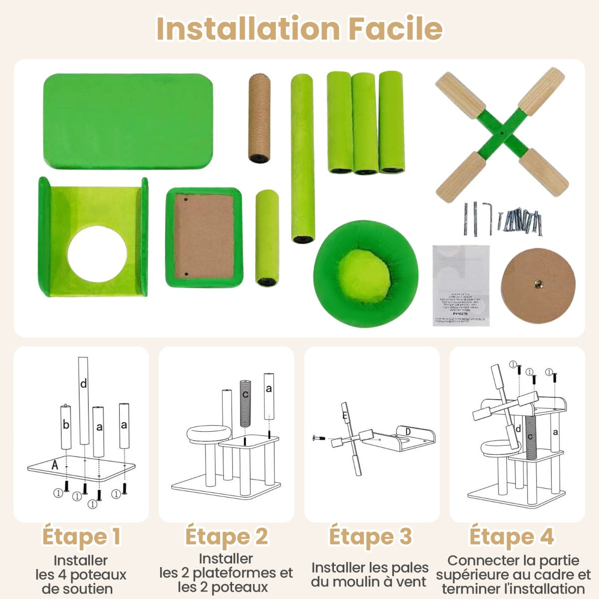 Small scratching post with lying area & platforms & scratching post cat tree in windmill shape
