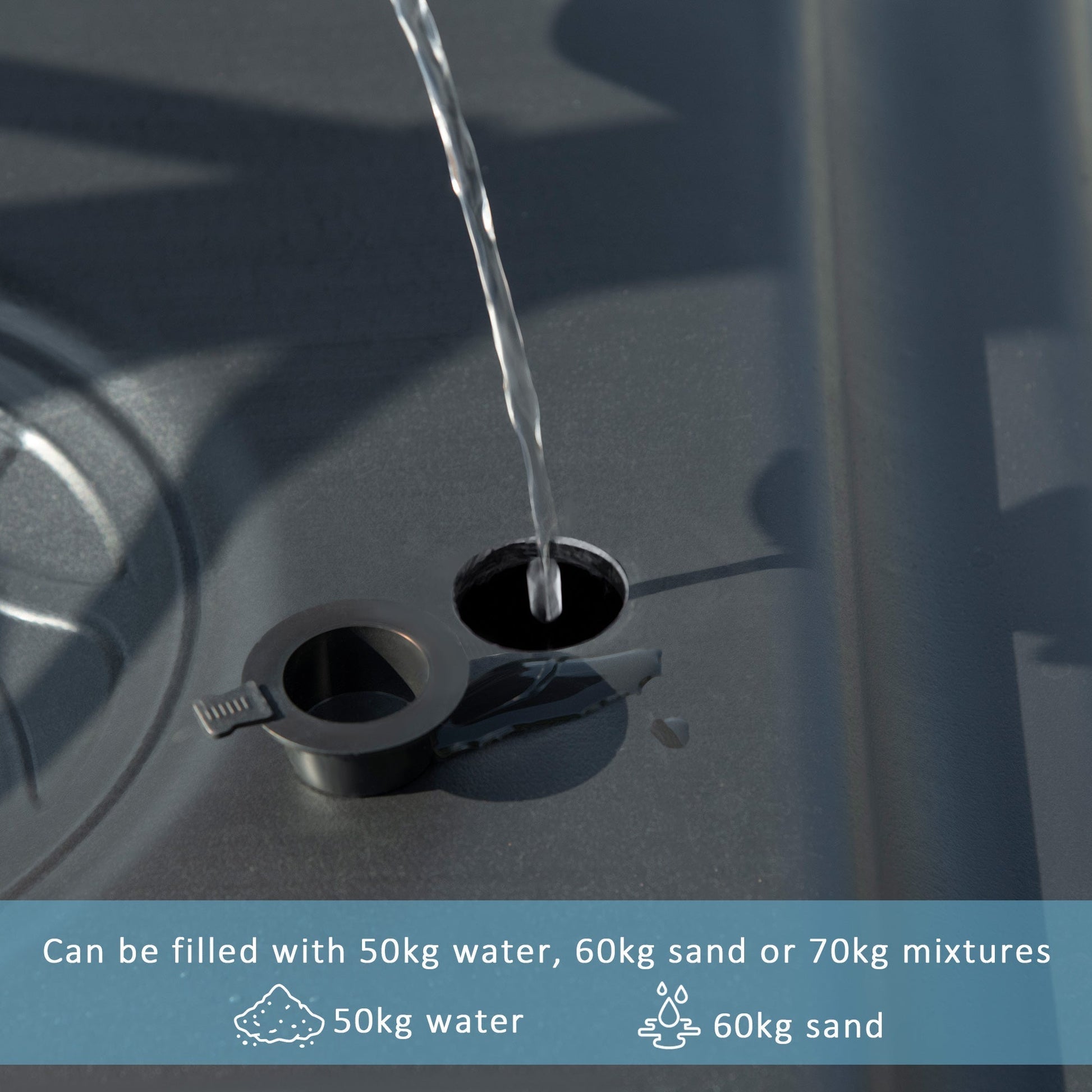- Base capacity: 50kg of water, 60kg of sand or 70kg of a water and sand mixture