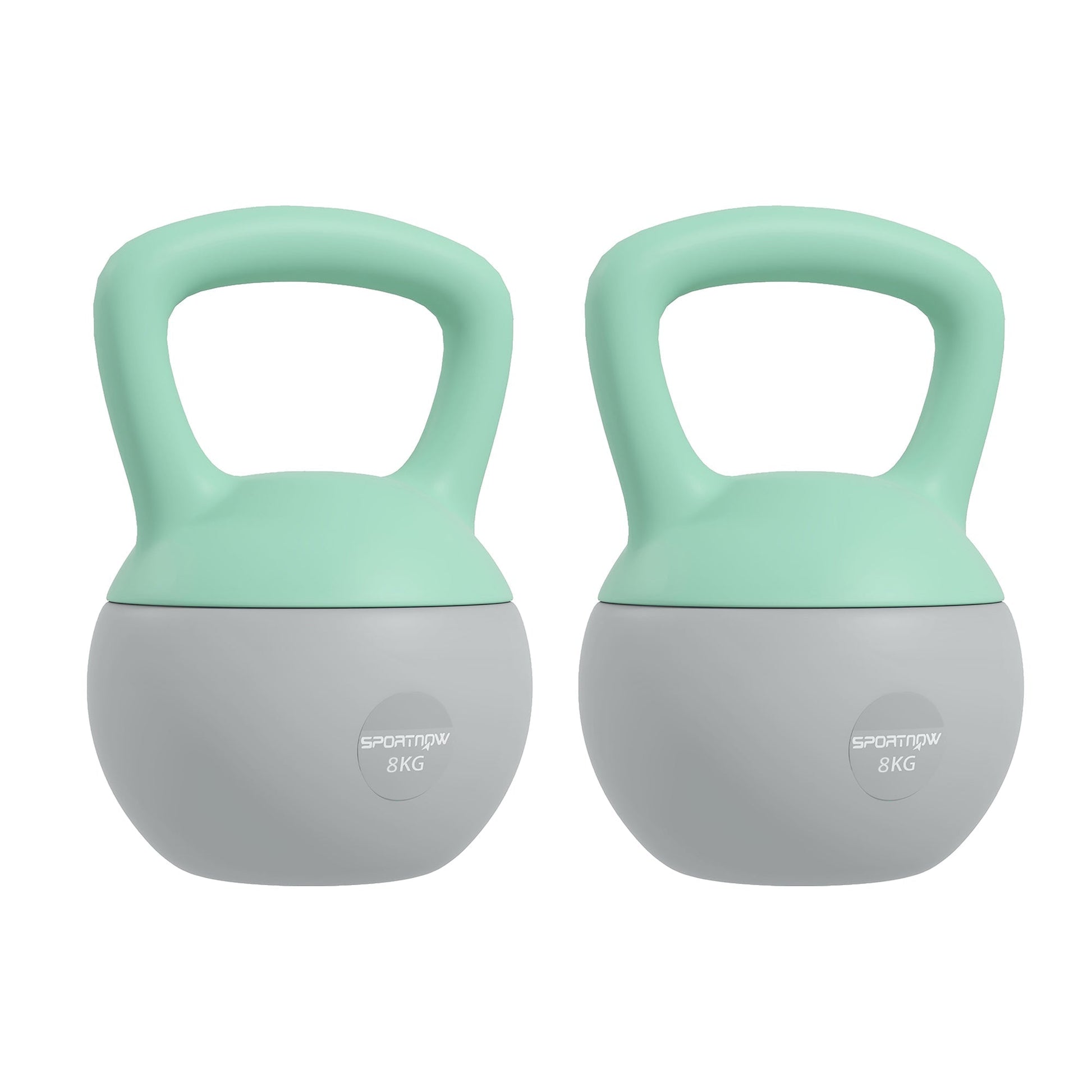 SPORTNOW 2 x 8kg Soft Kettlebell, Kettle Bell with Non-Slip Handle, for Home Gym, Strength Training, Cardio - Grey and Green