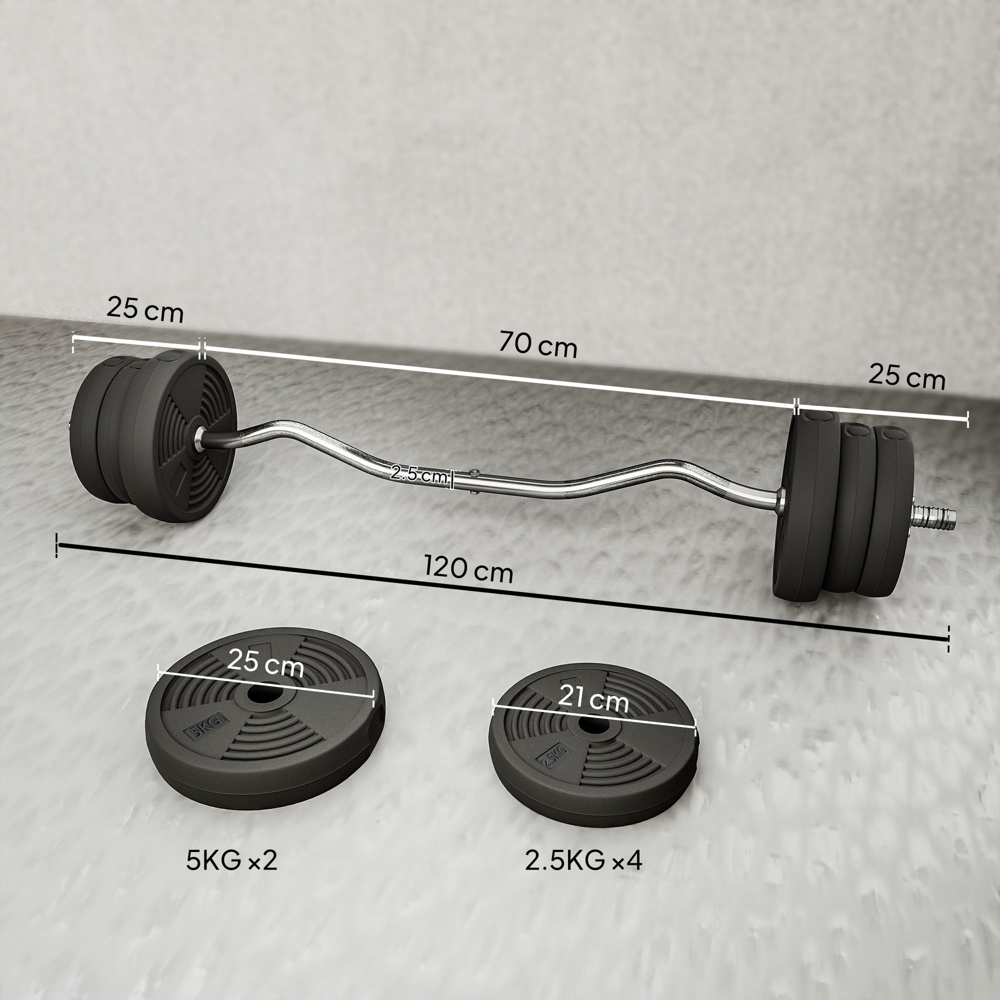 SPORTNOW 25kg Barbell Set, Adjustable Weights with Curl bar and Non-Slip Handle, for Women and Men Weight Lifting Training