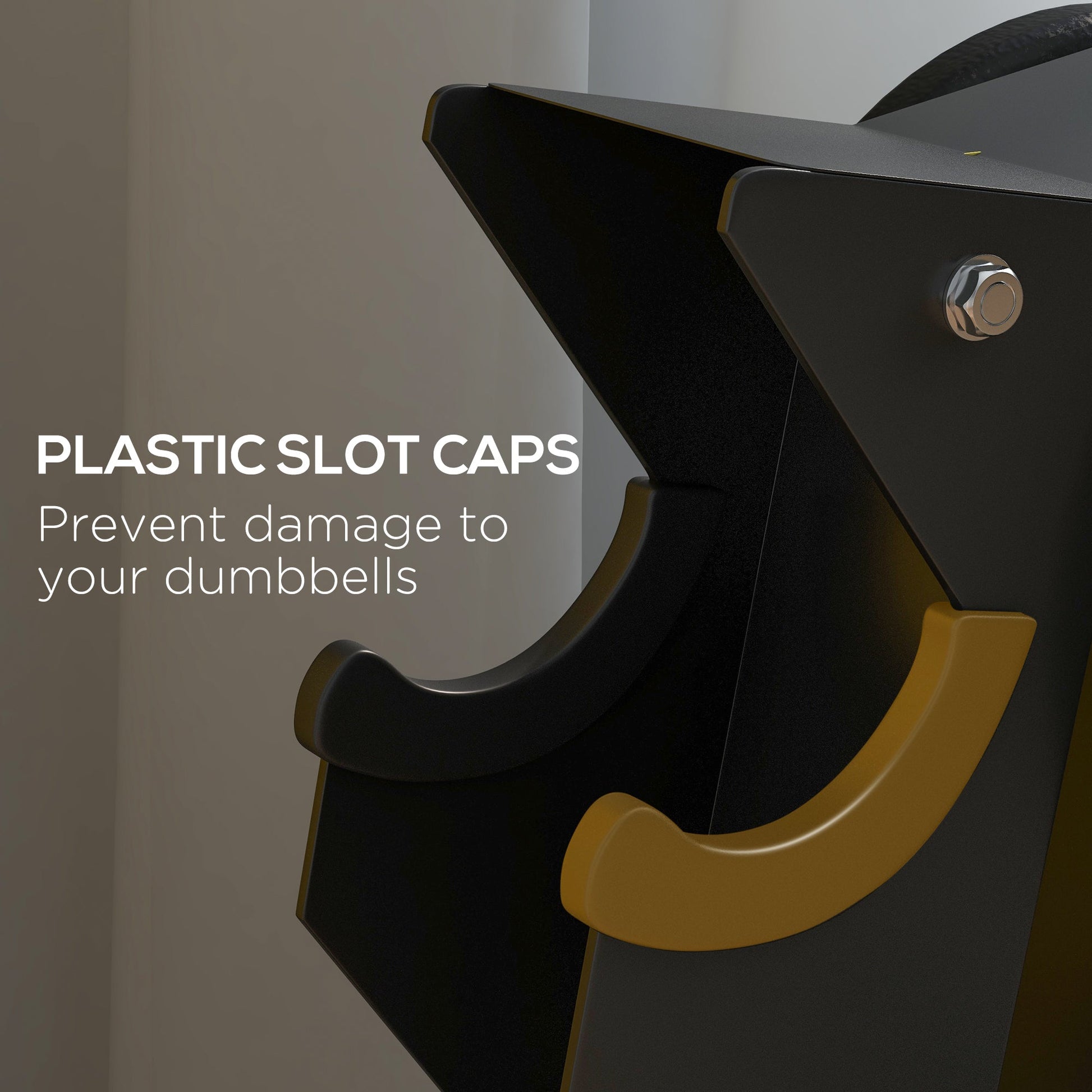 - Rack with plastic inserts to prevent damaging your dumbbells