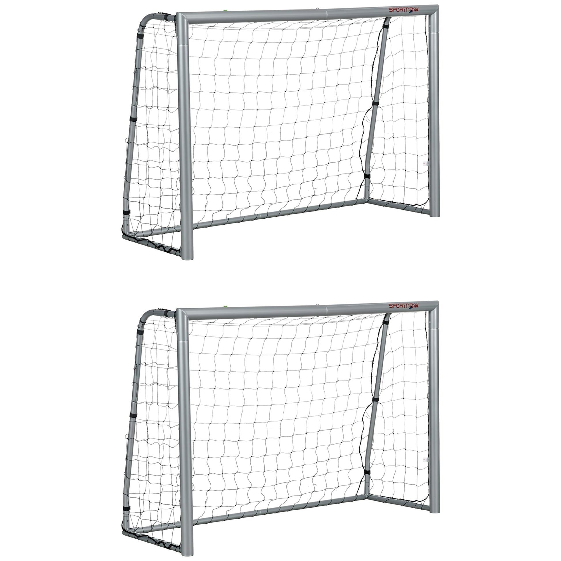 Perfect your technique with our SPORTNOW football net set of two, taking your skills to the next level. Portable and easy to assemble, you'll train at home or take practise with you. Made with a solid steel frame and weather-resistant net, it thrives outdoors, ready for your most powerful shots. Setting up is simple; screw the frame together and add the net. Whether you're honing your skills solo or dominating in competitive matches, this is a must-have for football enthusiasts.