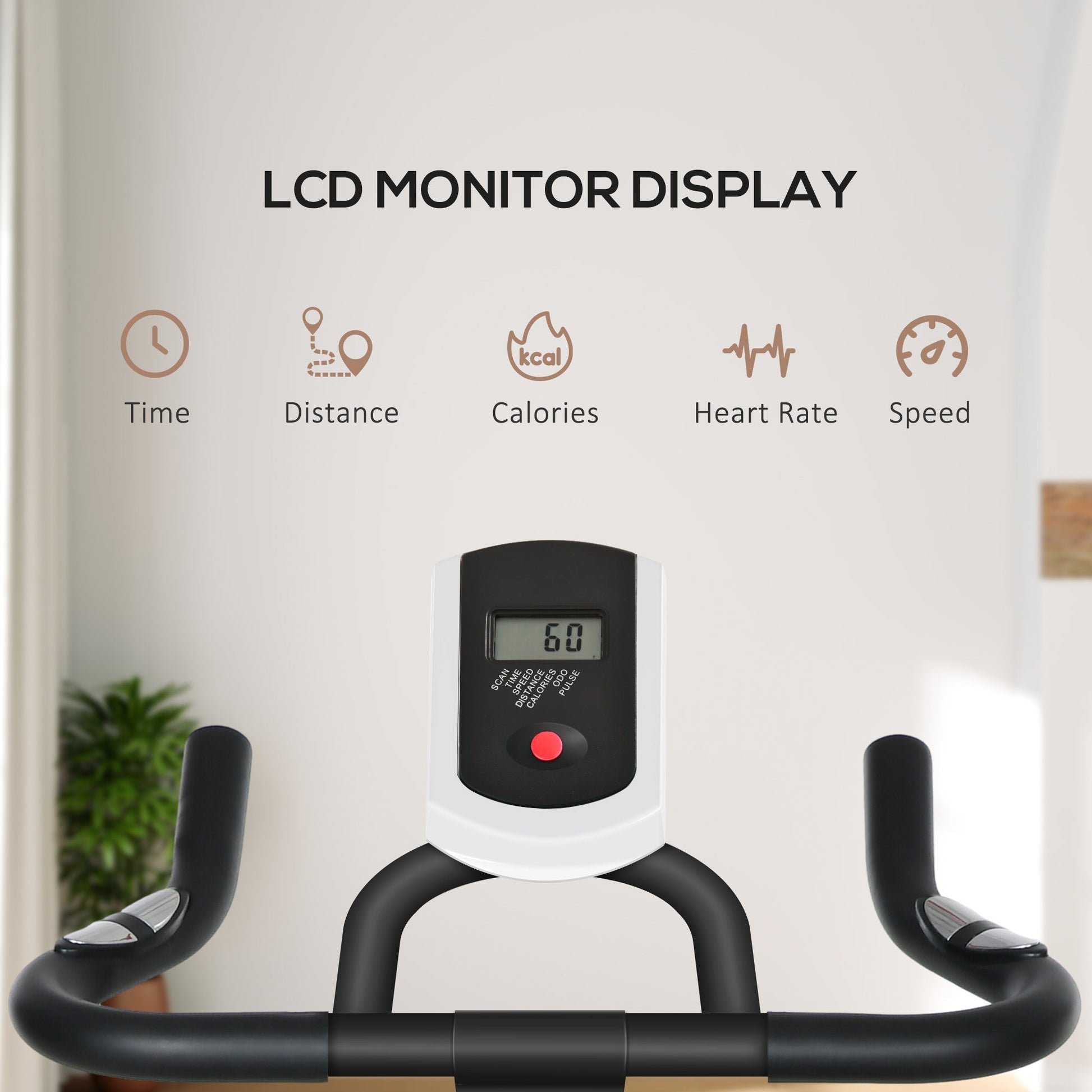The stationary bike from SPORTNOW is a great solution for your workout routine. The fitness bike provides a full body workout while keeping you in control with the LCD monitor that displays time, speed, pulse and calories. Adjustable seat height, handlebar height and belt-driven resistance allow you to tailor your workout to suit your fitness level. You can easily adjust the resistance using the knob to find your workout condition. Our static bike is a great addition to your fitness regime.