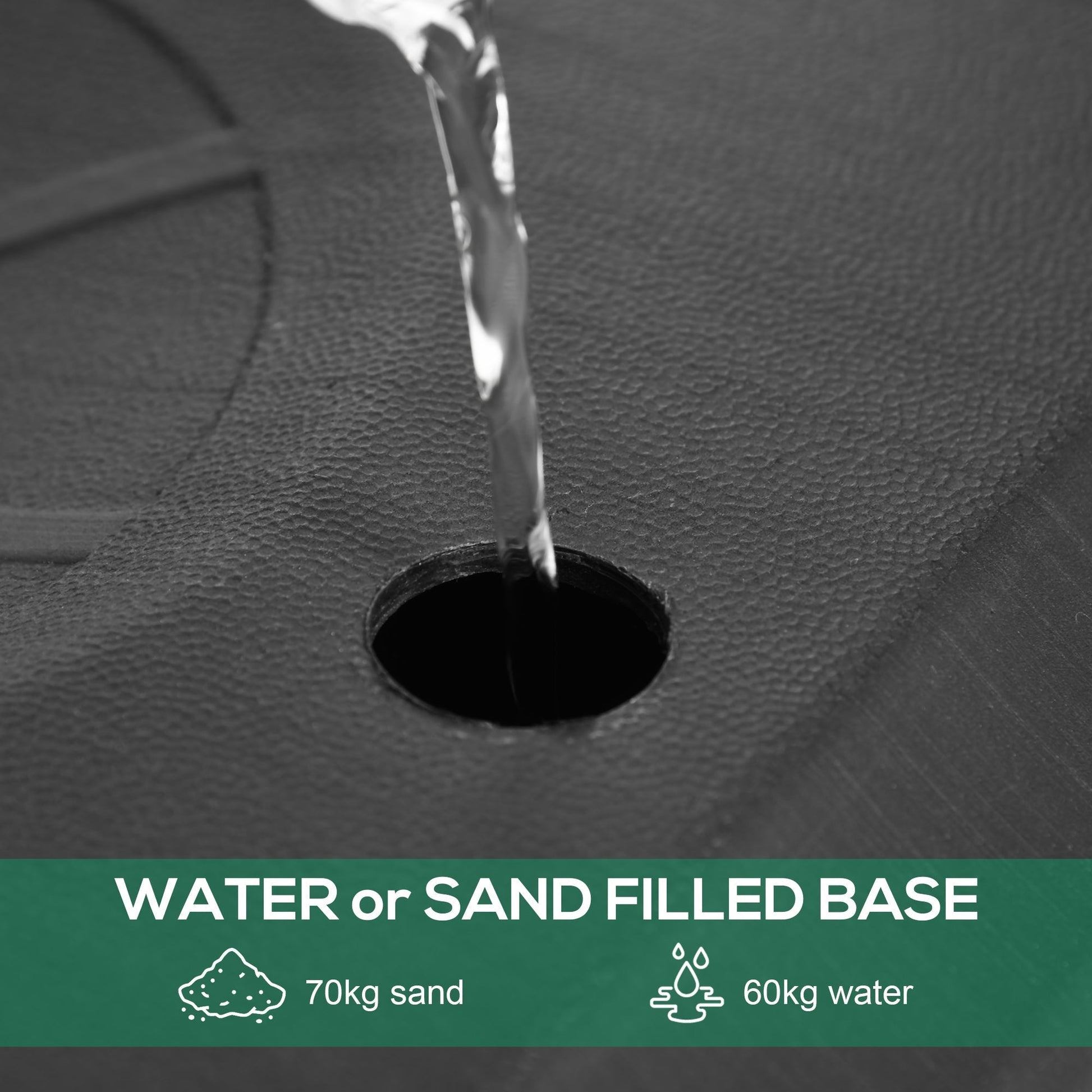 - Base capacity: 60kg water and 70kg sand