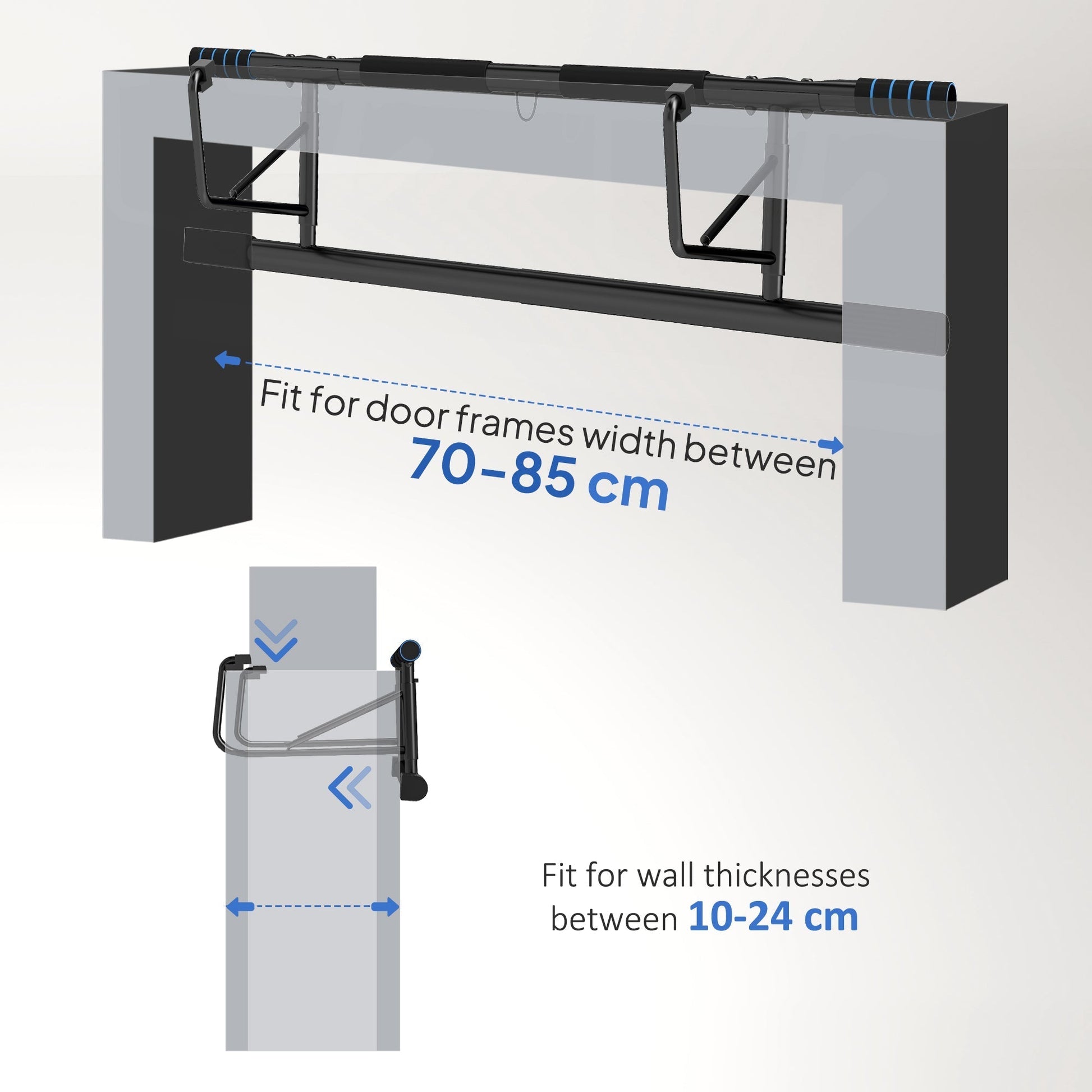 Transform your doorway into a mini gym with the SPORTNOW pull-up bar! This installation-free design easily hangs on door frames (80-100 cm wide) and walls (10-24 cm thick), allowing you to perform pull-ups with ease. Use the included resistance bands to push your limits even further. Enjoy a comfortable grip from the EVA foam handles as you pull yourself up. It's a fantastic full-body workout – all you need is a doorway to get stronger and fitter.