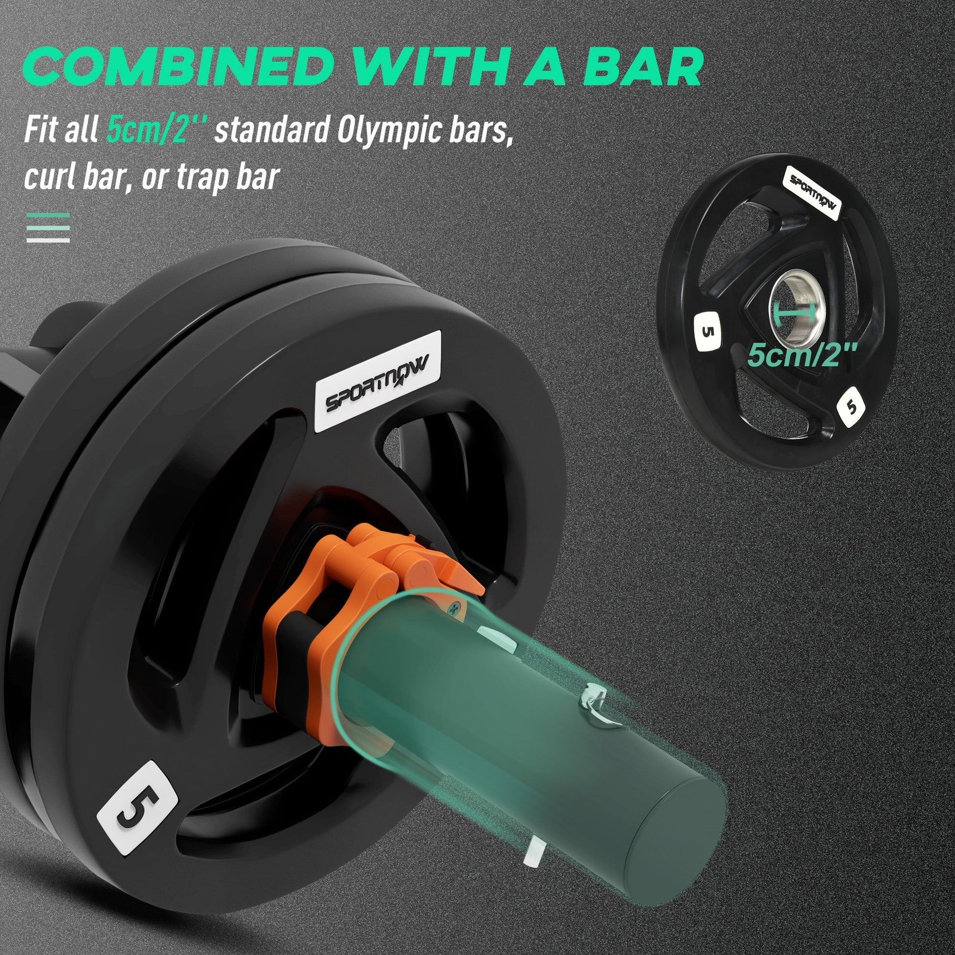 Keep active with the SPORTNOW tib bar, which comes with two 5kg weight plates, designed to strengthen your leg muscles. Featuring a snap fastener and a limit pin, the weight plates stay firmly on the bar – no worries of them falling off. Plus, with four foam pads, you’ll have extra comfort to maximise your workouts. Weight plates have three grip holes, so you can use them separately for lateral raises, plate rotations, chest presses and more