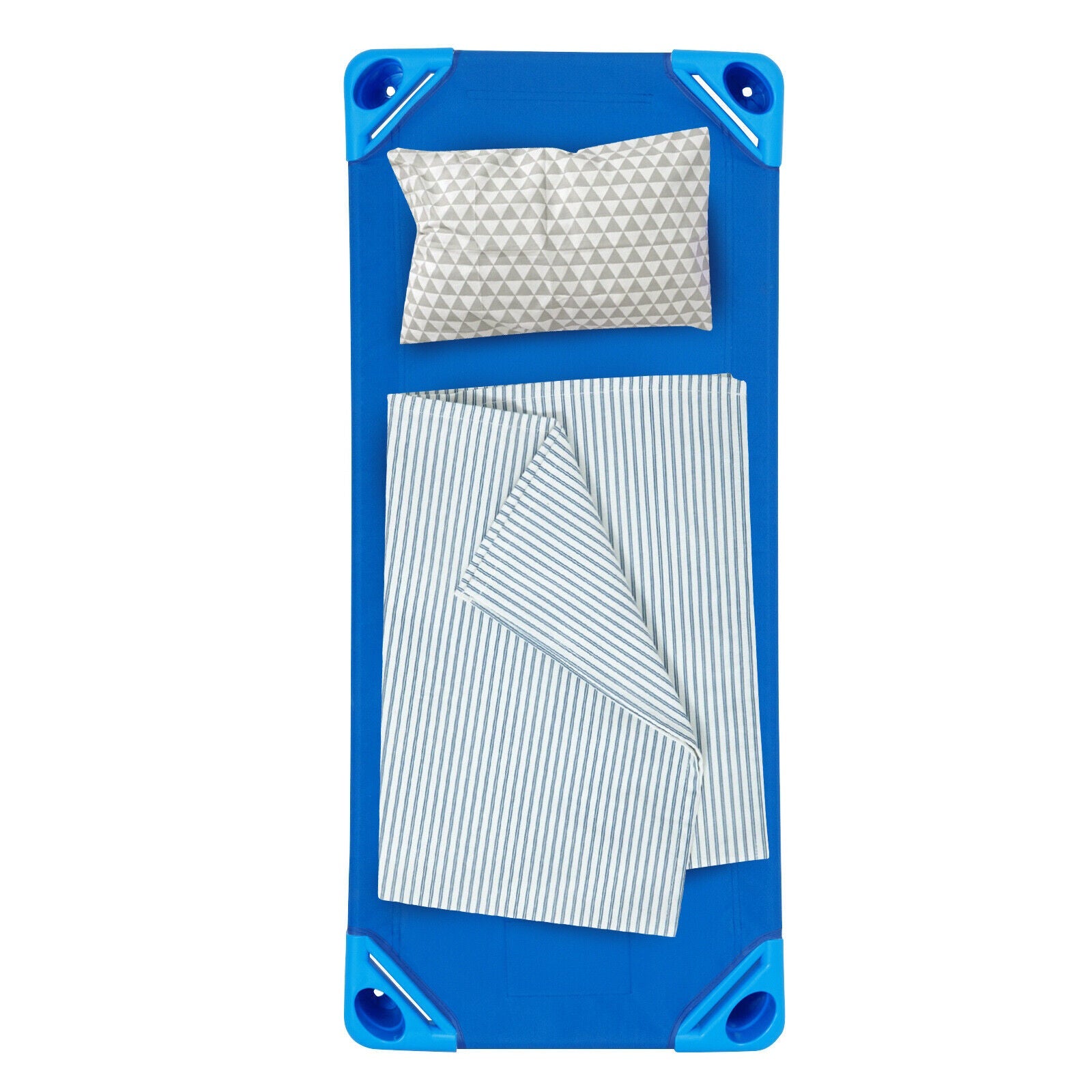 Made with a durable washable fabric, the sleeping mat keeps your little ones cozy and comfortable. The fabric attaches with loop and lock closure at both ends to keep in place as children lay tossing and turning. Each cot features powder coated steel poles and durable plastic corners to withstand long term use. Plus, the mat fits tightly to the corners with minimal gaps to protect kids' safety. This children sleeping cot will be the perfect place for you toddler to take a nap, no matter at school, in a daycare or at home. After use, the daycare cots can be stacked together to save space. If you are looking for a kids nap cot bed like this, do not hesitate to place an order! Have A Good Snooze Time: High-quality cots provide kids with comfortable sleeping experience in preschools and daycares. The stretch-resistant netting perfectly supports toddler's body for better relaxation. Kids can stretch their bodies flexibly on the cot, finding an optimal sleeping posture. Toddler-friendly Elevated Cots: 4 plastic legs elevate this naptime cot from the ground to offer kid with a safer relaxing place. In this way, the kid can keep a distance with dust and insects. Besides, the smooth surface can prevent your kids from being scratched. Stackable Design for Space Saving: This sleeping cot is stackable and can be piled up vertically. This design can save space and is perfect for daycare or preschool which has limited room for kids to sleep. Additionally, the stackable cots offer a comfortable sleeping place for kids and leave them sufficient space for activities. Safe Material and Sturdy Structure: Constructed with firm iron pipes and breathable fabric, this stackable nap cot set has extra sturdiness, high stability and great durability. The heavy-duty frame covered by fabric with no extra gaps, ensuring a total load capacity of 60kg, which fits kids daily needs. Easy Maintenance and Quick Assembly: The assembly of this simplistic designed cot can be quickly finished following by the instructions with all parts given in the package. You can wipe this sleeping cot clean with a towel or detach the mesh fabric covering for deep maintenance.
