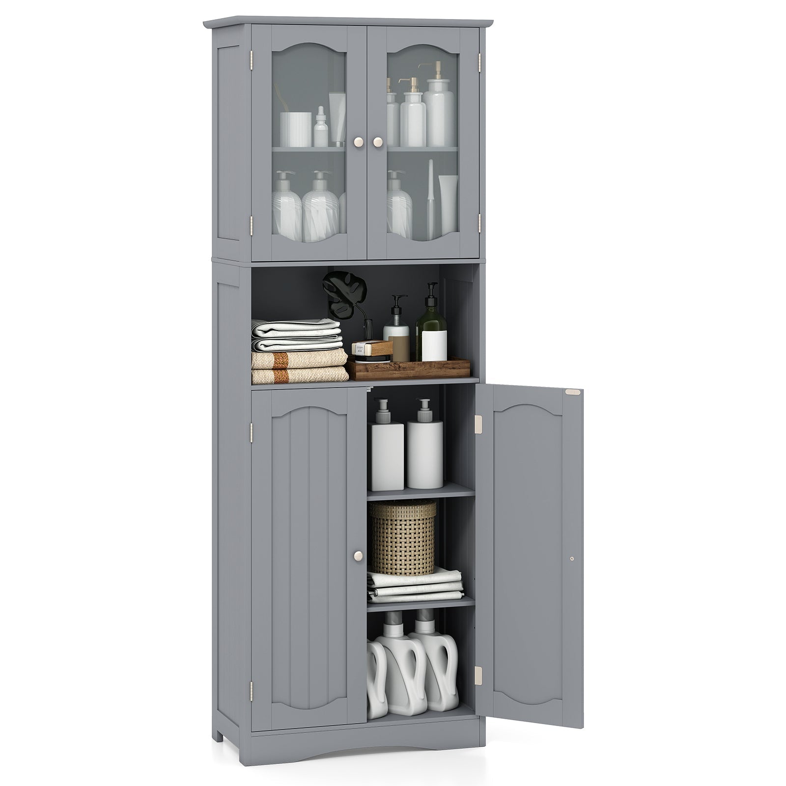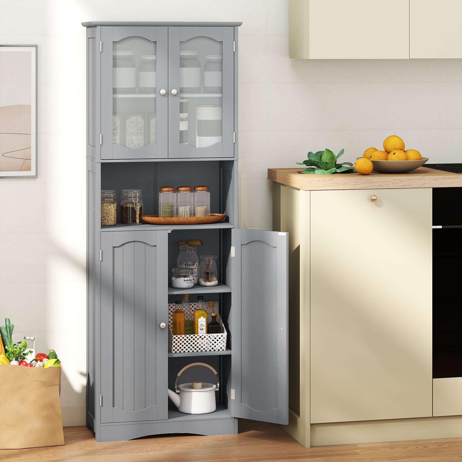 Tempered Glass Door Pantry Cabinet with 3-Position Adjustable Shelves-Grey