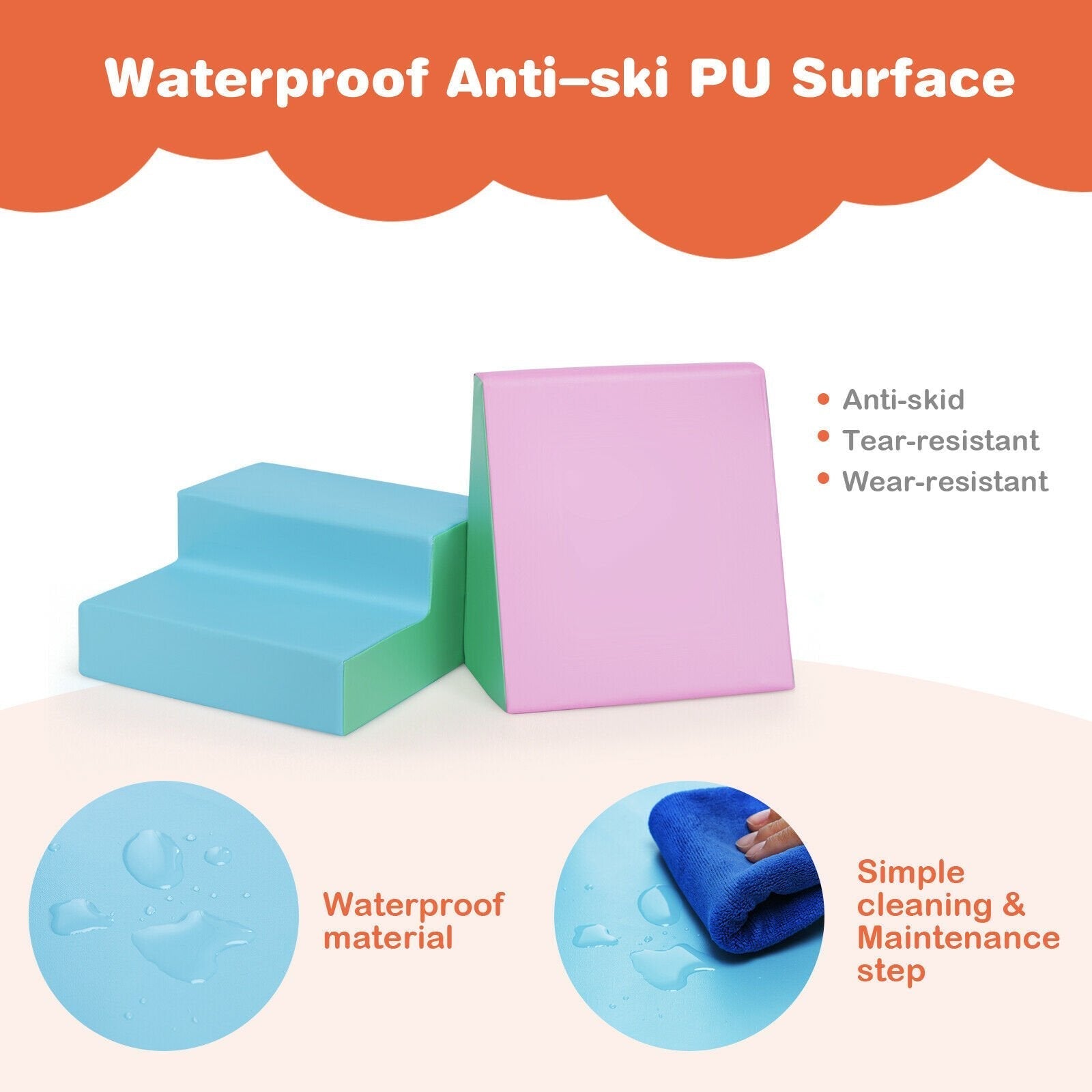 If you are looking for a safe and funny game for your beloved child, this children's climb and slide game set must be your good choice. Your little one will love climbing, crawling and sliding on this 2-piece beginner climber set. Through the play, babies can develop gross motor skills, hand-eye coordination and gain confidence as they crawl up the steps and slide down the soft wedge. With the multiple-colour appearance, our foam set may become a captivating addition to any places, such as living room, bedroom and kindergartens. And the compact size and lightweight make it convenient for transfer from one room to another. If you're looking for 2-piece beginner climber set, please don't miss it! Suitable for kids to crawl, slide, walk and seat Ideal for kindergartens, living rooms and bedrooms Lightweight for free arrangement and easy transport The waterproof surface makes it easy to clean and maintain Compact size and lightweight make it convenient to move Soft and waterproof surface to protect kids from getting hurt Filled with high-density EPE foam to provides a strong support Educational toys for the development of babies' gross motor skill