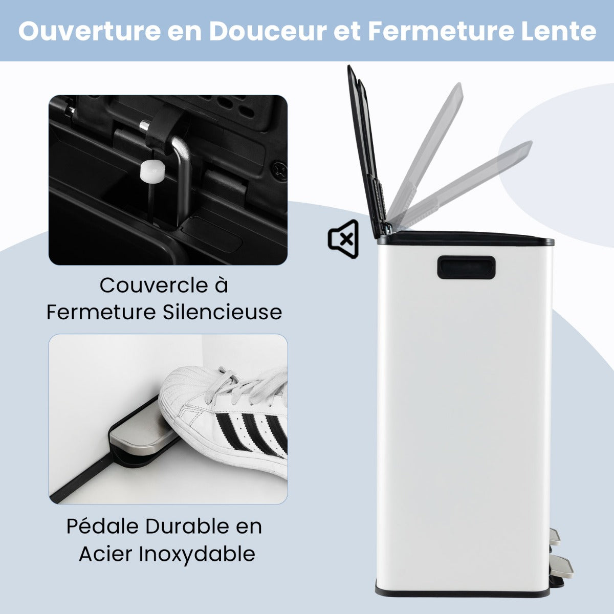 Trash Can with 2 Deodorizer Compartments and Soft Close Lids-White
