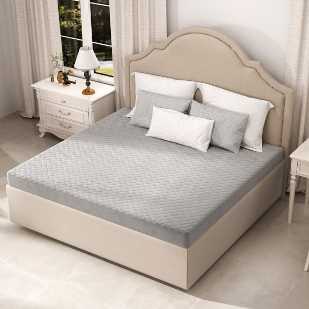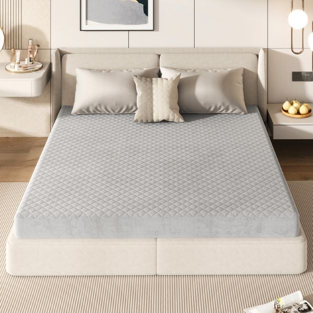 Crafted with a luxurious breathable surface, this velvet topper offers exceptional ventilation, wicking away sweat to keep you cool and dry all night long. The square jacquard seam design not only adds a touch of elegance to your bed but also enhances durability, making it wrinkle-resistant and long-lasting. With a secure fit elastic pocket that accommodates mattresses up to 41 cm thick, this topper ensures a snug and protective shield around your mattress. The multi-layer design, filled with sponge, provides a cozy sleeping surface for the whole family while safeguarding your mattress against dirt and damage. Portable and space-saving, you can easily fold and store this topper when not in use, making it ideal for travel or compact living spaces. Say goodbye to uncomfortable heat and hello to peaceful slumber with our advanced mattress topper – your ticket to a restful night's sleep. Bullet Point:Advanced Breathable Design: With crystal super soft velvet surface, our mattress topper brings you a luxurious touch feeling. It is unsweltering and skin-friendly, offering excellent ventilation. Say goodbye to uncomfortable heat from traditional mattress toppers! Better Workmanship: The square jacquard design makes the topper more wear-resistant and long-lasting, extending its lifespan and saving on maintenance time. In addition, this mattress pad comes with a non-slip bottom so it won't slide no matter how much you roll over in bed. Secure Fit Elastic Pocket: Featuring a deep elastic skirt, this mattress pad ensures a snug fit on your mattress, acting as a protective shield. The elastic pocket is deep enough to fit mattress up to 41 cm and provides exceptional encasement. Protect the Mattress: The mattress is designed with multiple layers and is filled with sponge. Not only does it provide a cozy sleeping environment for your entire family, it also protects your mattress from dirt and damage, bring you great convenience. Portable and Space-Saving: Designed for convenience, this mattress topper is easy to store and carry. Simply fold it into a compact size when not in use, making it perfect for storage in small spaces. Enjoy comfort wherever you go!