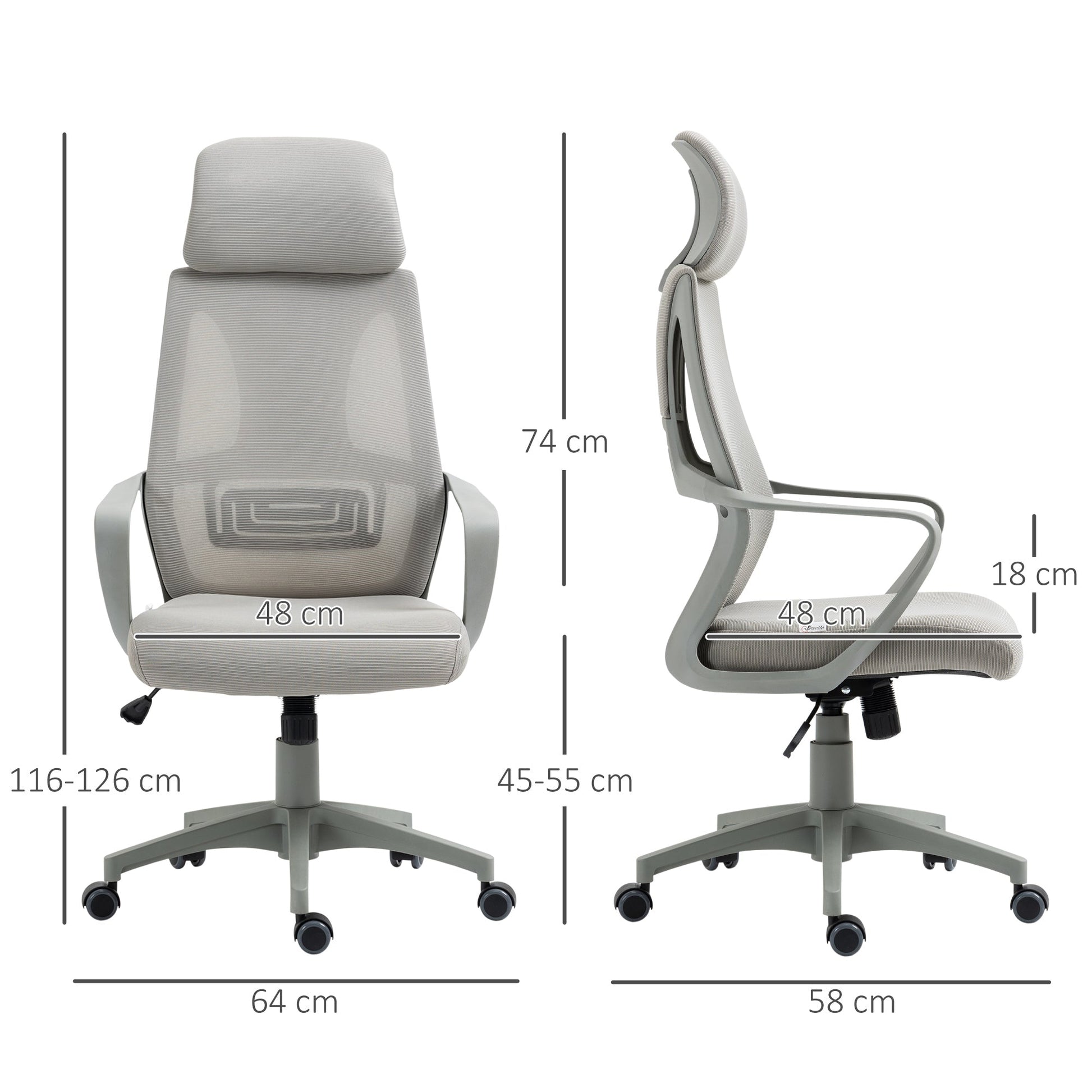 Vinsetto Ergonomic Office Chair, High Back Computer Chair, Mesh Desk Chair with Lumbar Support, Headrest, Wheel, Adjustable Height, Grey