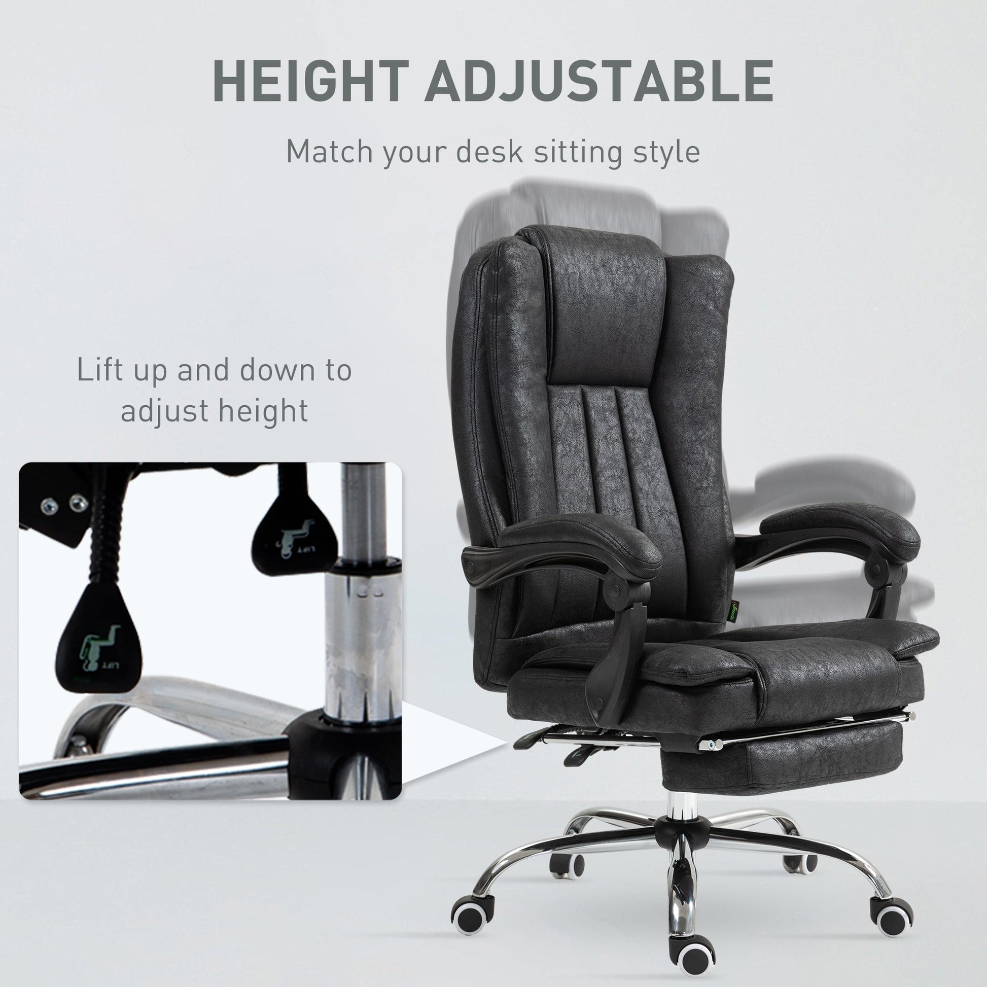 Vinsetto Home Office Chair Microfibre Desk Chair with Reclining Function Armrests Swivel Wheels Footrest Black