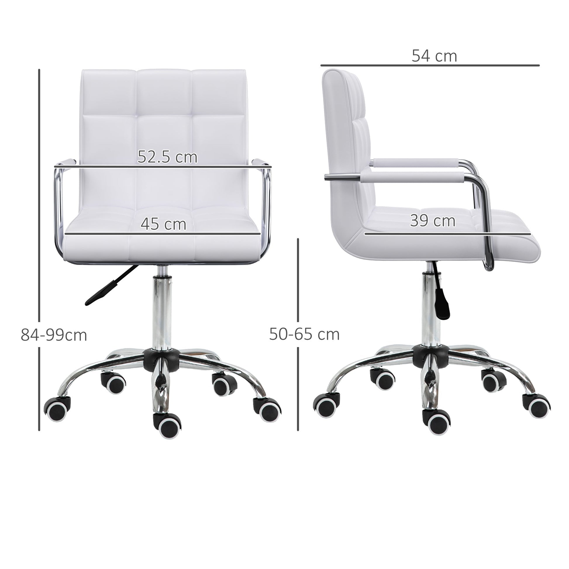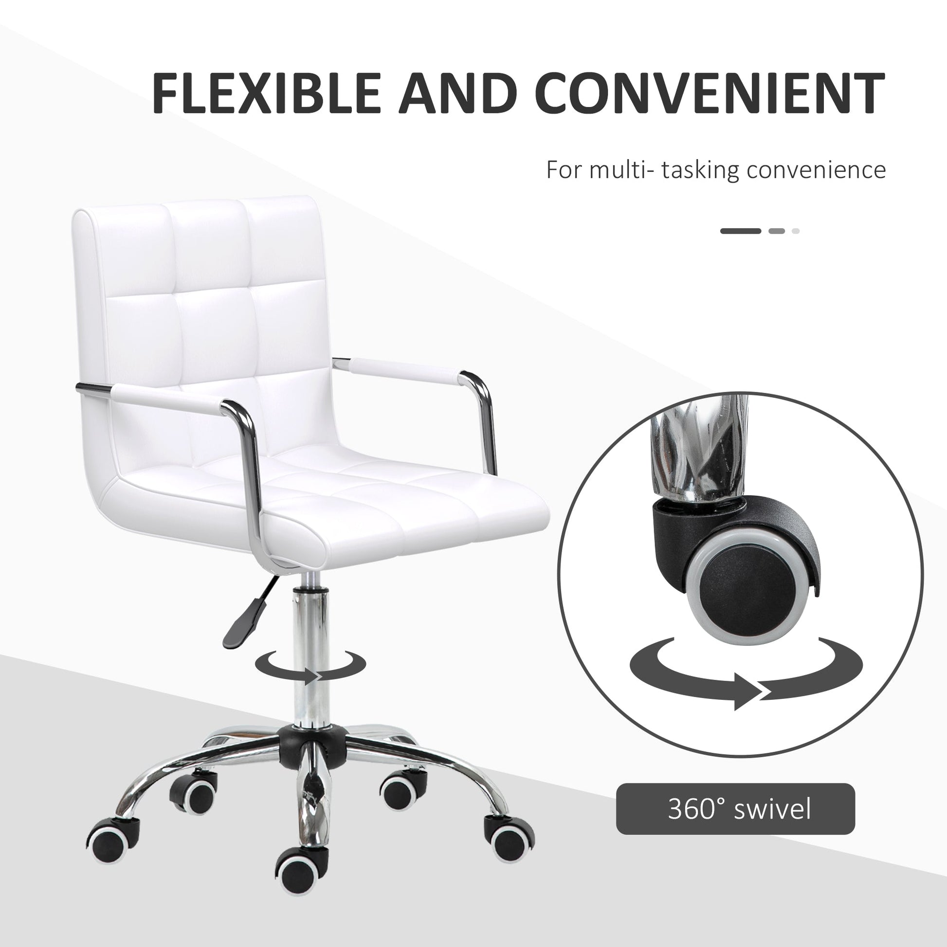 Vinsetto Office Chair, Makeup Vanity Chair, Mid Back Computer Chair, PU Leather Swivel Study Chair with Adjustable Height, Armrest and Rolling Wheels, White