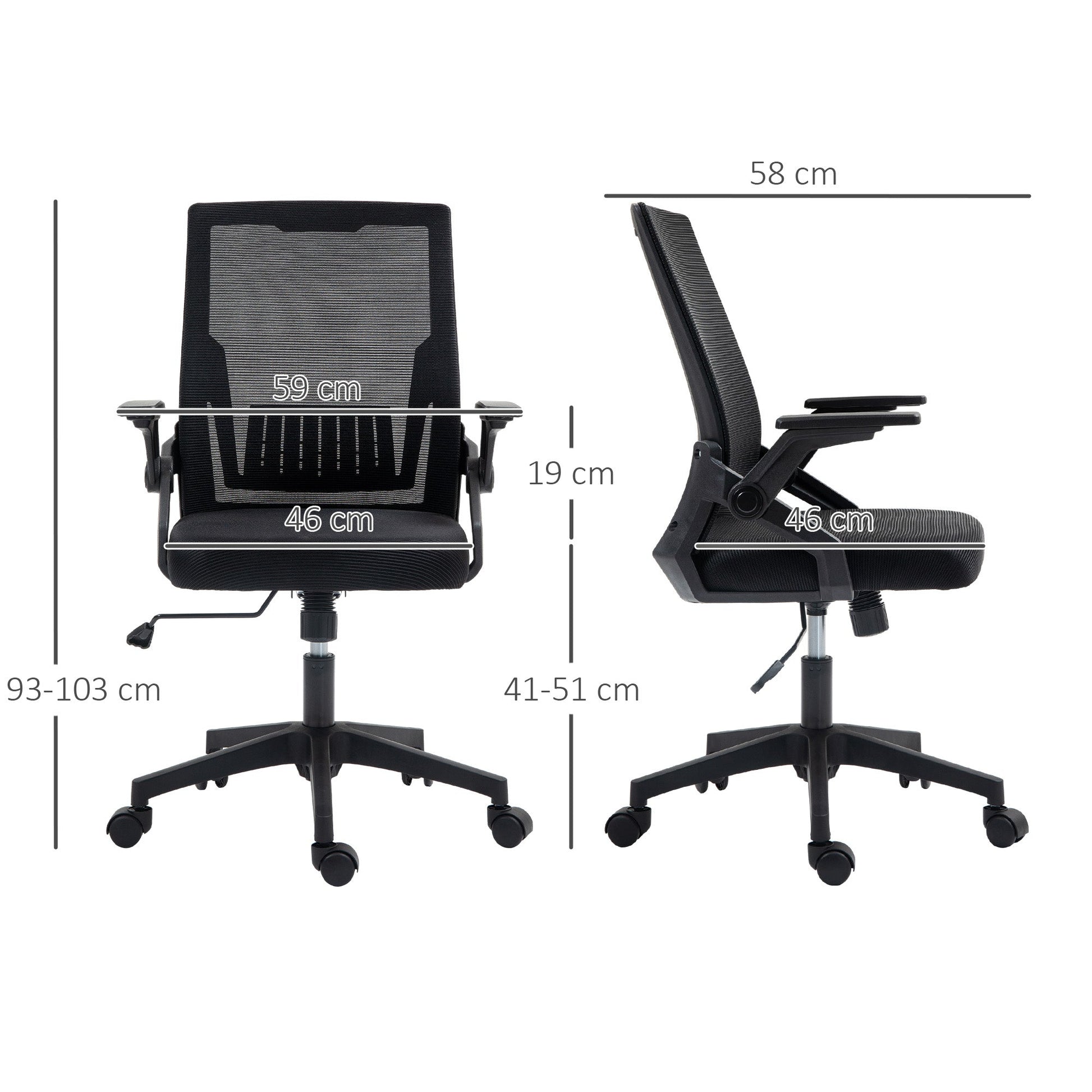 - Flip-up armrests to tuck underneath desk easily