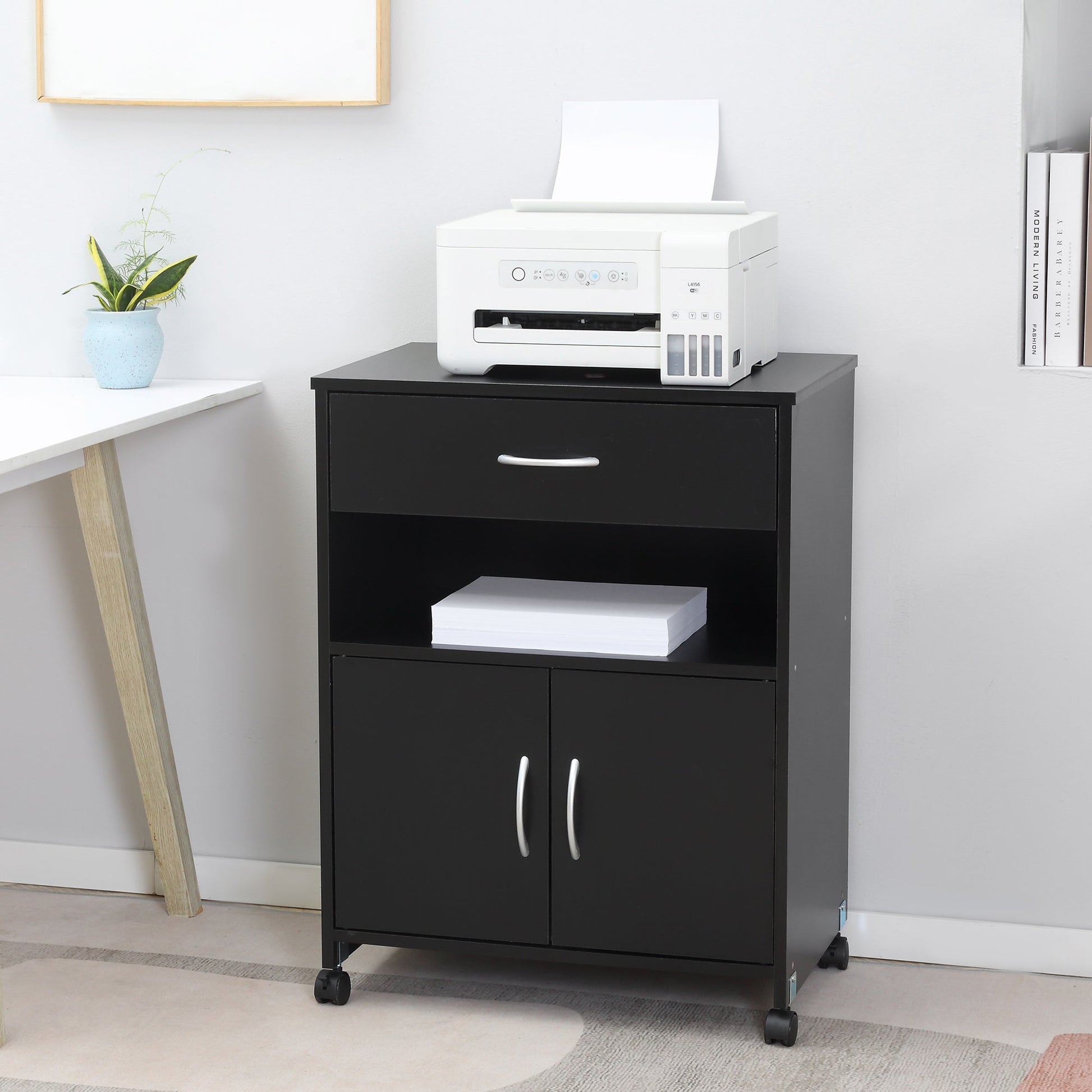 Vinsetto Printer Stand Mobile Printer Cabinet with Storage, Open Shelf, Drawer for Home Office, 60cm x 39cm x 80cm, Black