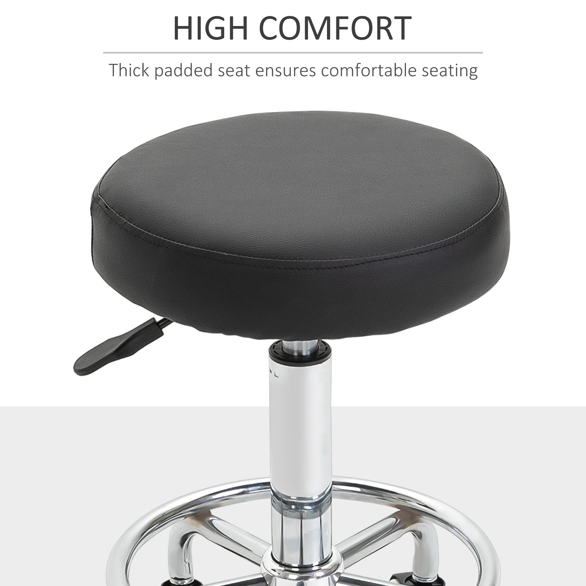 كرسي دائري دوار من Vinsetto، كرسي قابل للتعديل الارتفاع مصنوع من جلد البولي يوريثان مع عجلات ومقعد دوار للصالونات والتدليك والسبا والمطبخ المنزلي، باللون الأسود