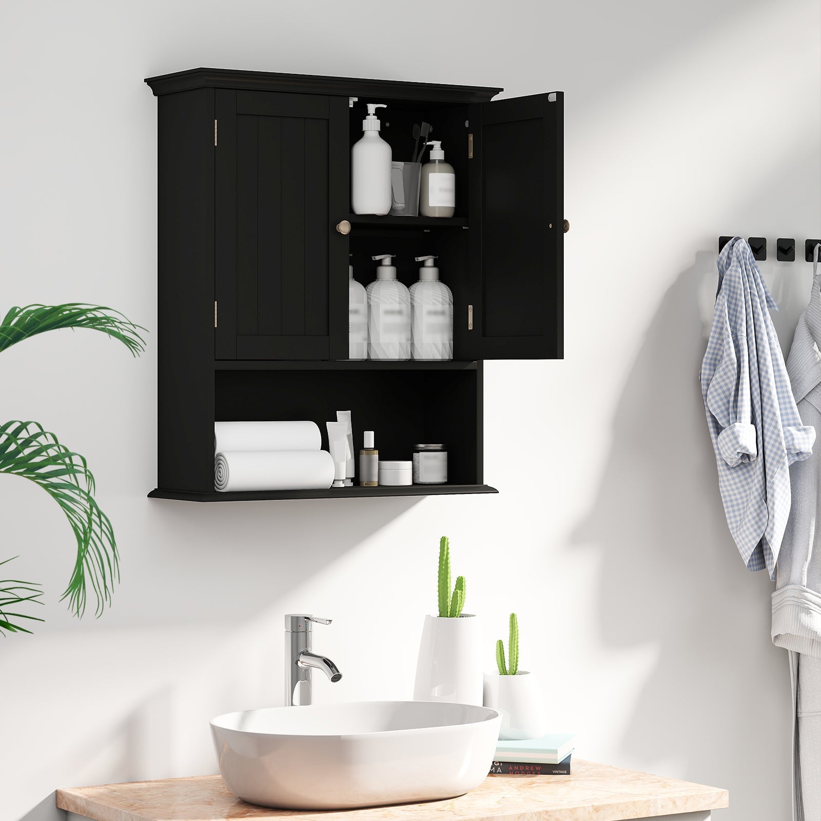 Wall Mount Bathroom Cabinet Storage Organizer with Doors and Shelves-Black