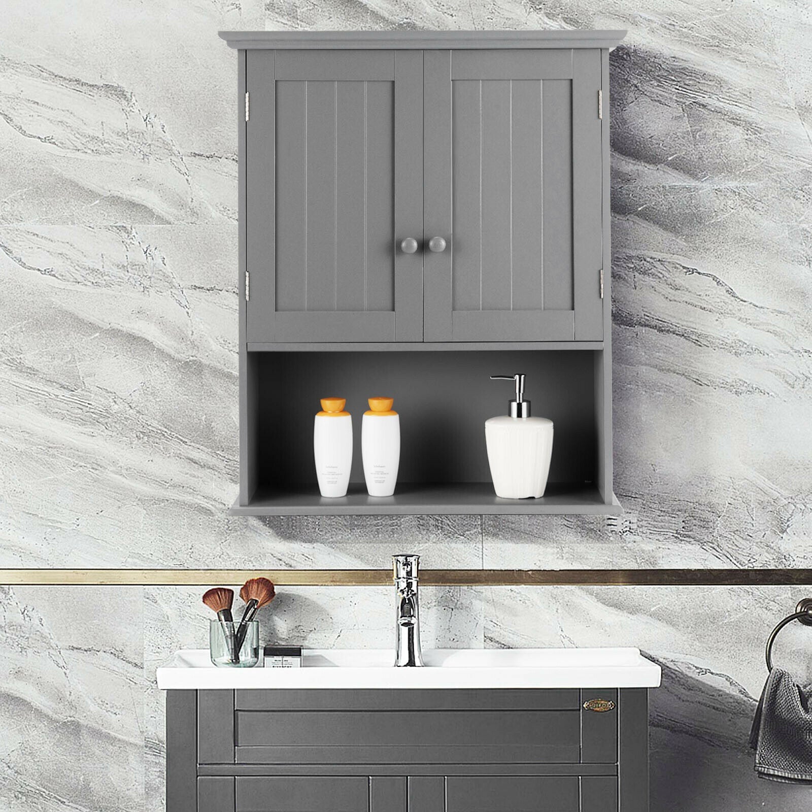 Wall Mounted Bathroom Storage Cabinet with Adjustable Shelf-Grey