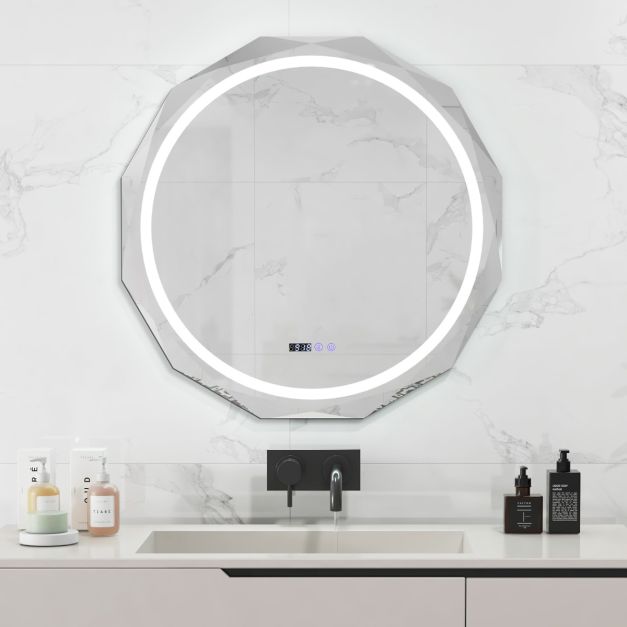 Create the perfect ambiance in your bathroom with our LED wall mounted bathroom mirror. Adjustable Color Temperature andBrightness:This LED lighted mirror can create the perfect ambiance in your bathroom with 3 adjustable color temperatures (3000K warm, 4500K natural, 6500K white) and brightness levels (20%-100%). For effortless control, it is equipped with smart touch control and LED time/temp display. Premium Copper-Free Silver Mirror:Crafted from high-definition silver mirror, this LED bathroom mirror offers exceptional definition while being resistant to corrosion. The explosion-proof glass provides added security, ensuring safety for you and your family. User-Friendly Features:With the memory function, the mirror can retain your last-used settings, making it easy to start your day the way you like it. The fast and safe defogging ensures a clear reflection even after a steamy shower, and the mirror will auto shut off after continuous operation for 60 minutes. 2 Connection Options:This lighted bathroom mirror offers two power supply options, giving you the flexibility to choose the method that suits your needs. You can either plug it into a socket or hardwire it to use the wall switch. Please note that professional electrician assistance is recommended for hardwiring. Easy Installation: Mounting this frameless LED bathroom mirror is hassle-free, thanks to the detailed installation instructions and wall-mounting accessories included. Its modern and minimalist appearance effortlessly complements any decoration style, adding a touch of glamour to your space.