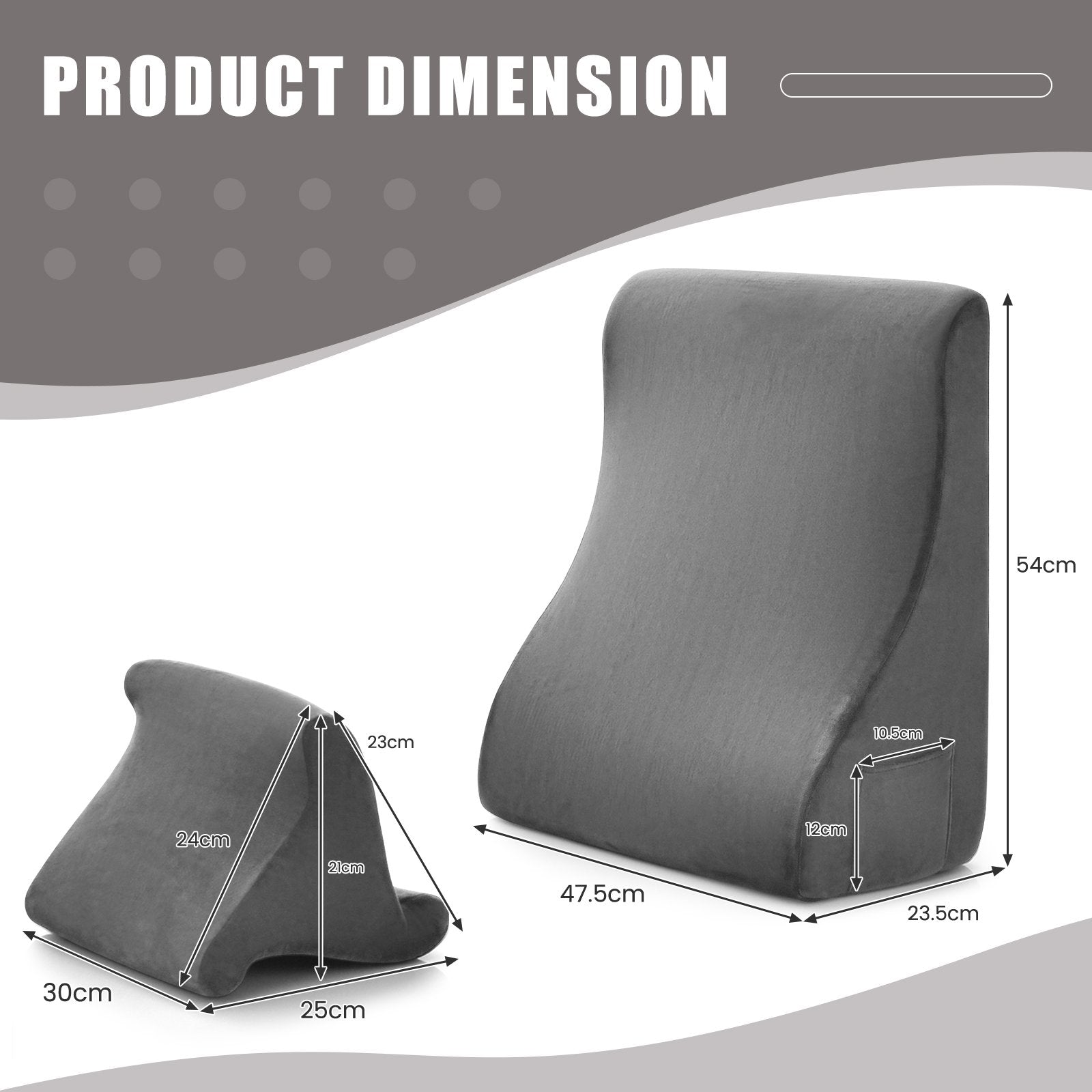 Wedge Pillow Set with Tablet Pillow Stand and SidePockets-Grey