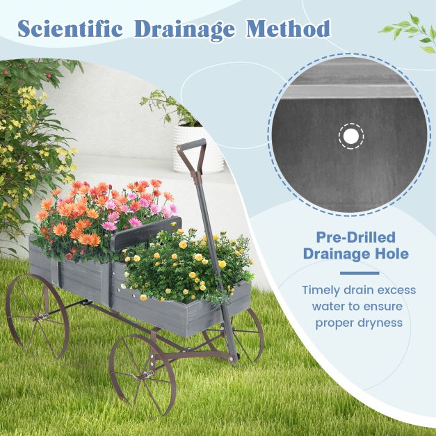 Wood Wagon Flower Planter with Wheels and 2 Planting Sections-Grey