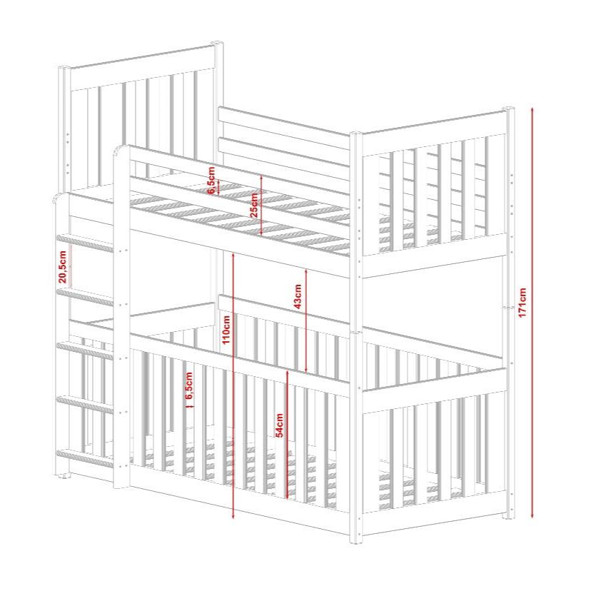 - Clearances: Top bed from floor: 110cm, bottom mattress height: 16cm