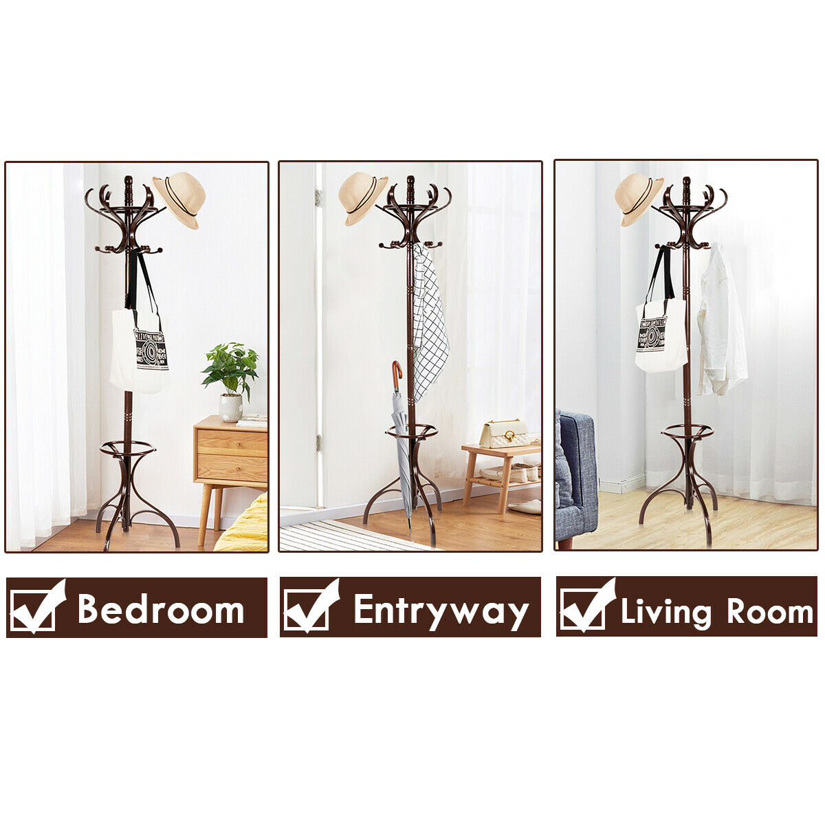 This traditional coat and hat stand will fit any room where it is required. This traditional coat and hat stand has stood the test of time and is still a favourite for porches and hallways. The 12 rotating hooks are great for hanging coats, jackets, and hats on, while the lower rail is great for walking sticks or umbrellas. Constructed from birch wood with a natural, black or brown stain, this stand will stand out in your home. If you are looking for a product such as this, do not hesitate to buy it. Eco-friendly stained wood Solid birch wood to guarantee a long service life The 3-in-1 design creates additional storage space With 12 hooks and a lower rail, coats, jackets and umbrellas can be organised tidily 360° rotating hooks make selecting the right jacket or coat easier. Compact stature perfect for small apartments The triangular base ensures stability while the birchwood offers strength Easy to assemble following the instructions provided Traditional coat and hat stand that will stand out in your home.