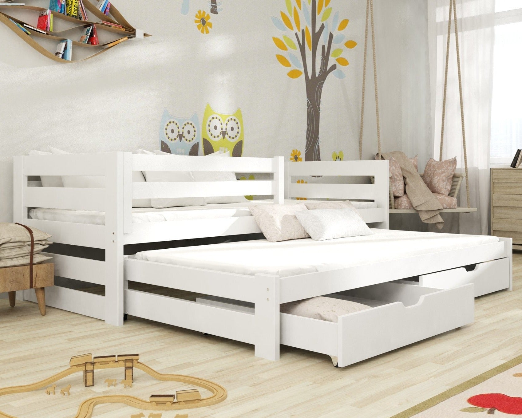 Discover the Kubus Double Bed with Trundle, a stylish and practical solution for your child's bedroom. Crafted from solid pine, it's available in a range of colours!