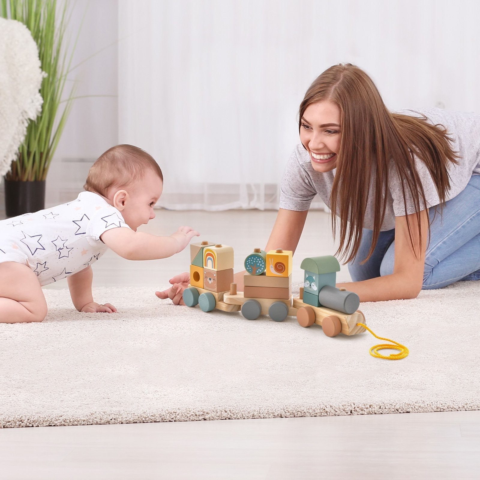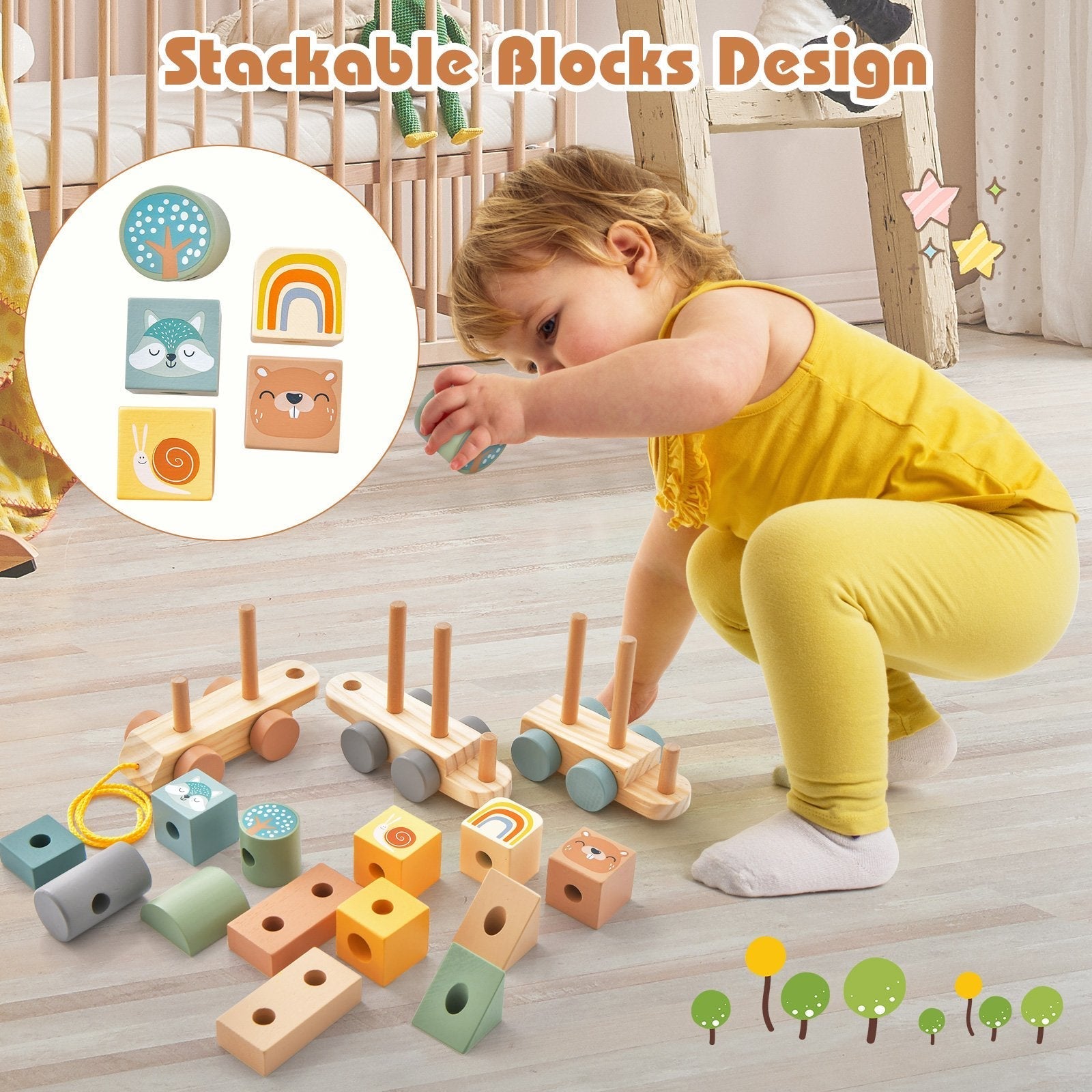 Wooden Toy Train Set with Stacking Wooden Blocks for Early Learning Education