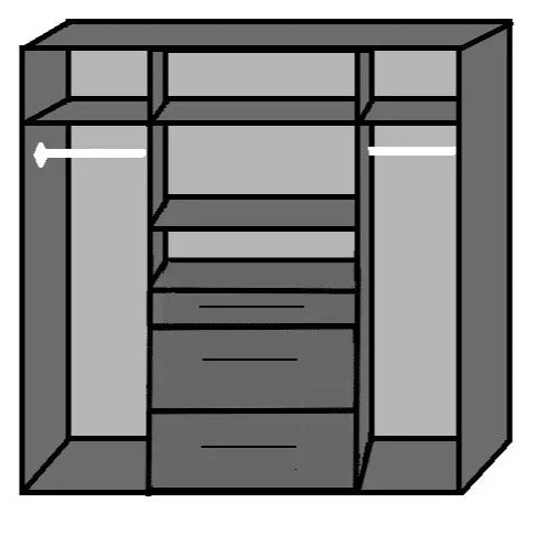 The CALLISTO 4 Door Wardrobe has a sleek and contemporary look, finished with high gloss. The wardrobe has trendy handles along with the 2 centre doors being mirrored which give the wardrobe a modern look.