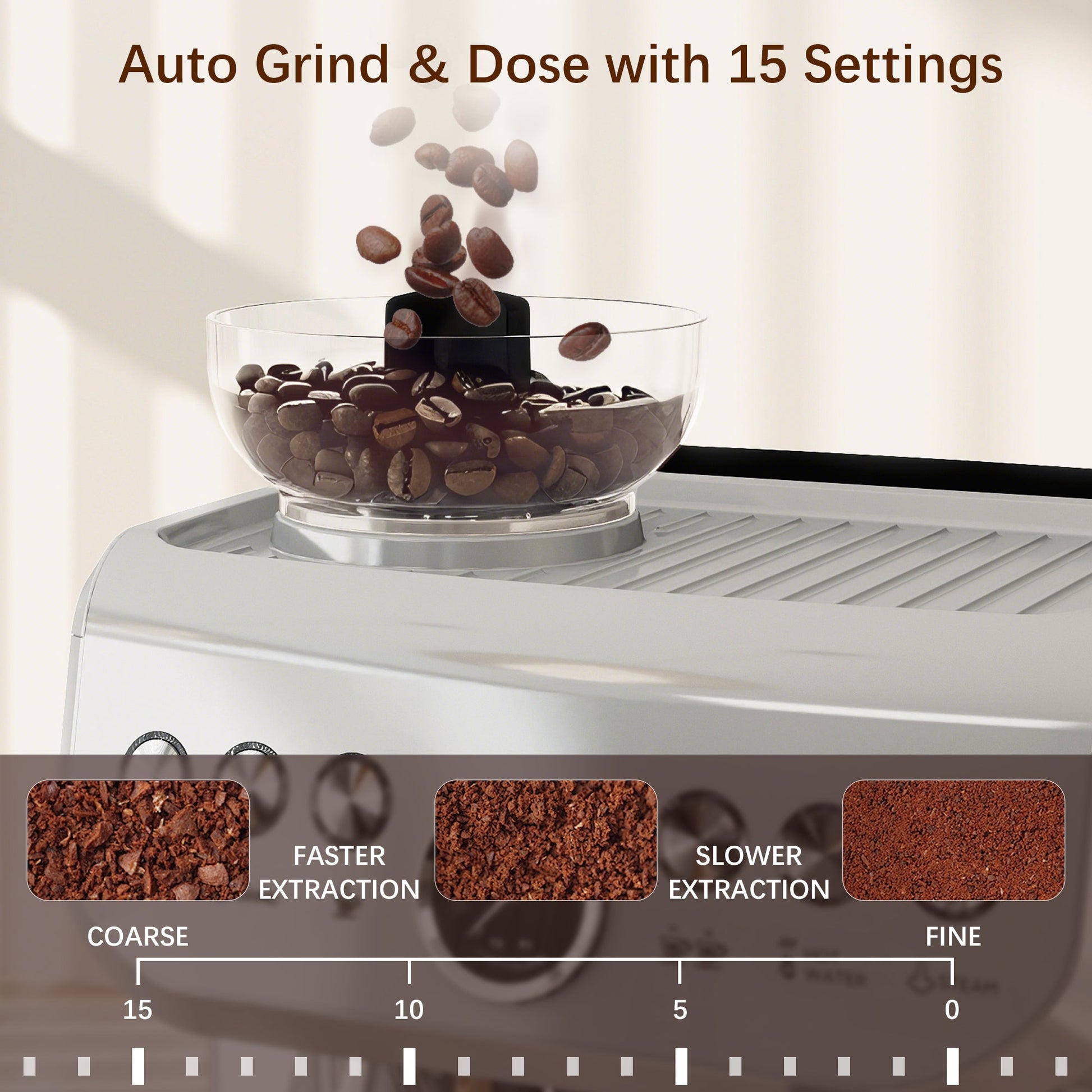 Przygotuj profesjonalną kawę, wszystko w swoim domu dzięki temu automatycznemu ekspresowi do kawy HOMCOM. Za pomocą dyszy parowej uzyskasz spienione mleko, a 15 opcji mielenia da Ci mnóstwo możliwości wyboru, jak grubo lub gładko chcesz uzyskać efekt końcowy. Dzięki ciśnieniu 15 barów ten ekspres do kawy zapewni Ci pyszny napój za każdym razem. W zestawie wszystkie potrzebne części.