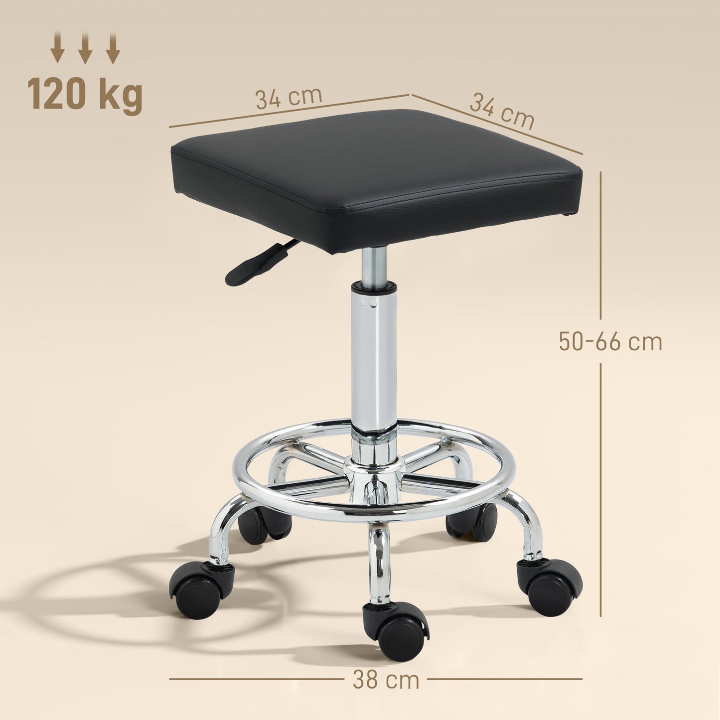 Odkryj wygodę stołka obrotowego HOMCOM, wszechstronnego krzesła obrotowego, które sprawdzi się w każdym salonie, warsztacie lub gabinecie kosmetycznym. Dzięki siedzisku wyściełanemu pianką i poręcznemu podnóżkowi ten stołek zapewnia optymalny komfort dla osób o wzroście od 50 do 66 cm. Ponadto dzięki pięciu uniwersalnym kółkom przesuwa się płynnie, zapewniając bezwysiłkową mobilność. Doskonały jako krzesło salonowe, krzesło kosmetyczne lub warsztatowe.