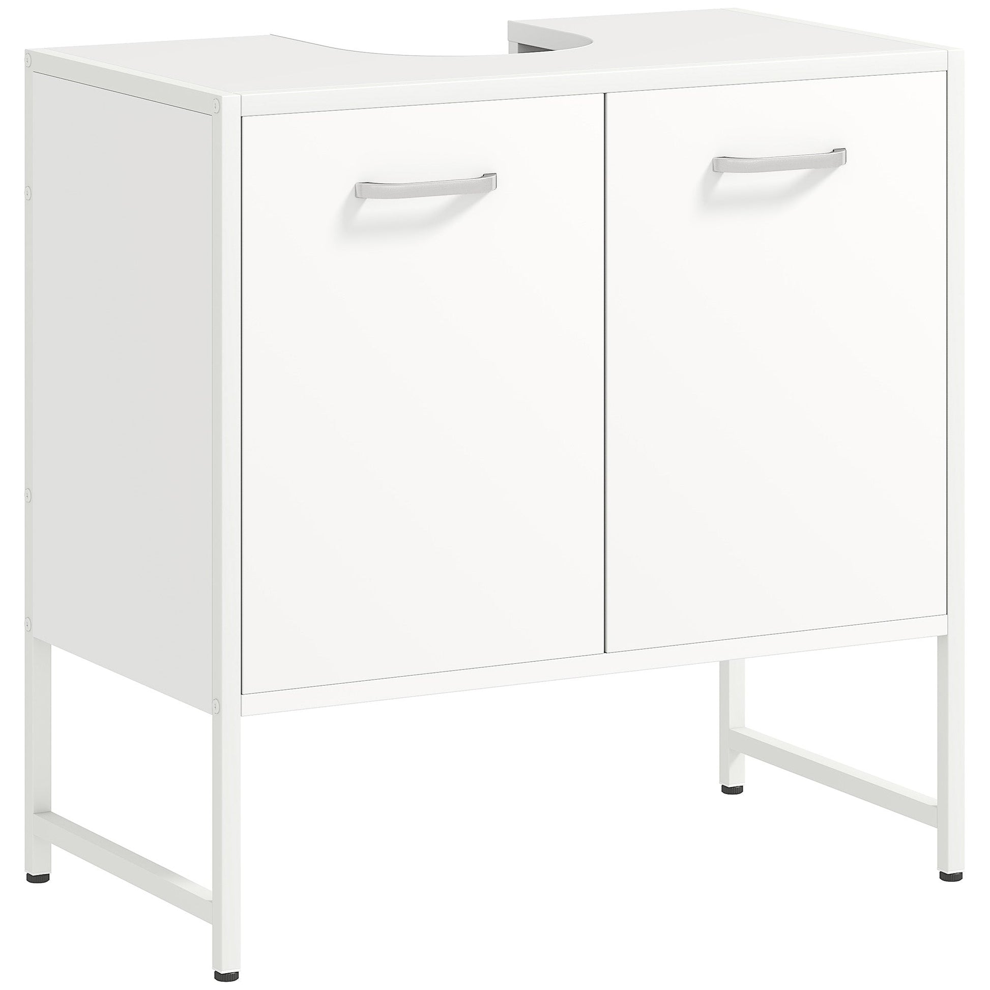HOMCOM Szafka łazienkowa pod umywalkę, szafka z drzwiami z cichym domykiem do umywalki z postumentem lub bez, biała