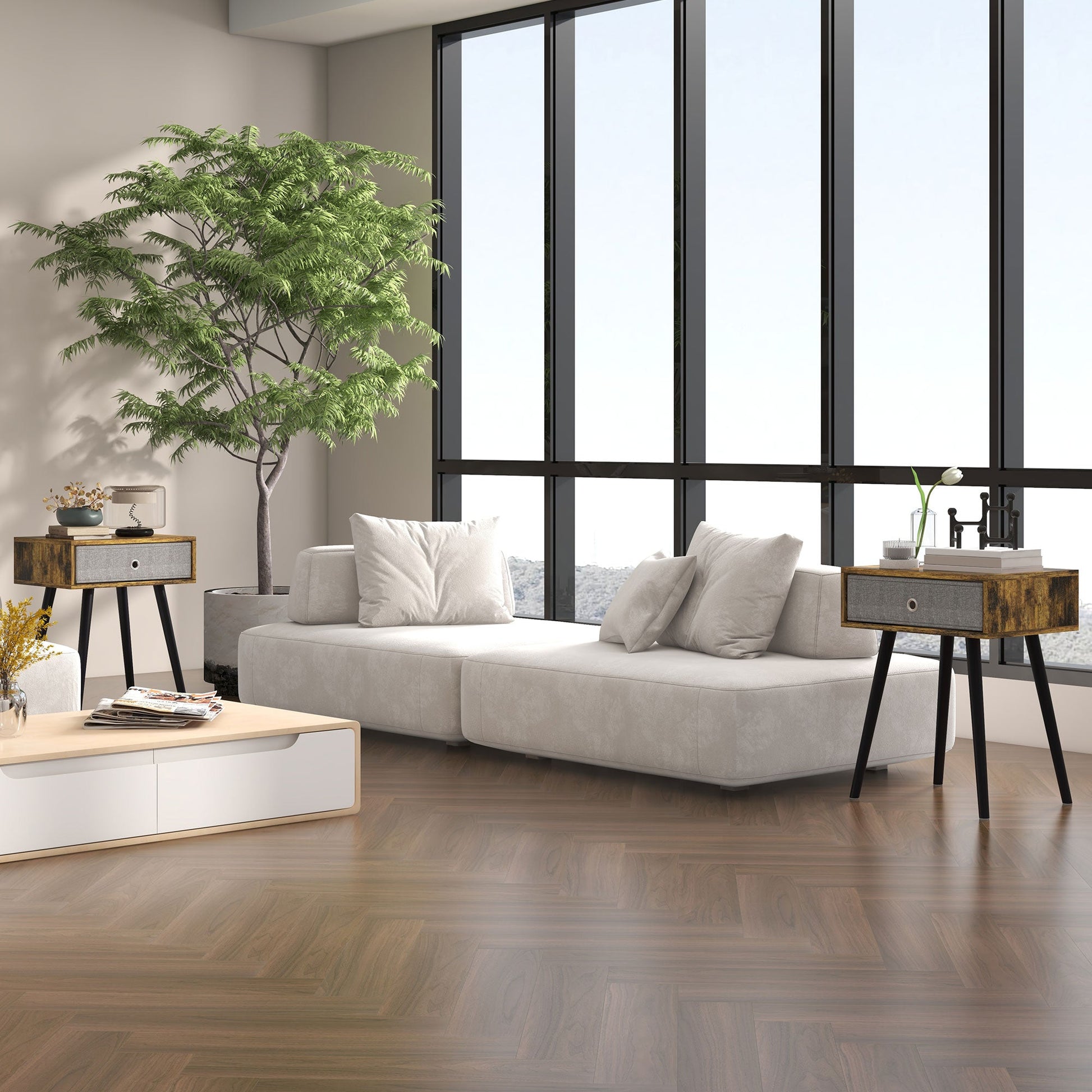 HOMCOM Bedside Table Set of 2, Industrial Nightstand, Tall End Table with Removable Fabric Drawer, Retro Chic Side Table Accent Furniture with Wooden Legs, Rustic Brown