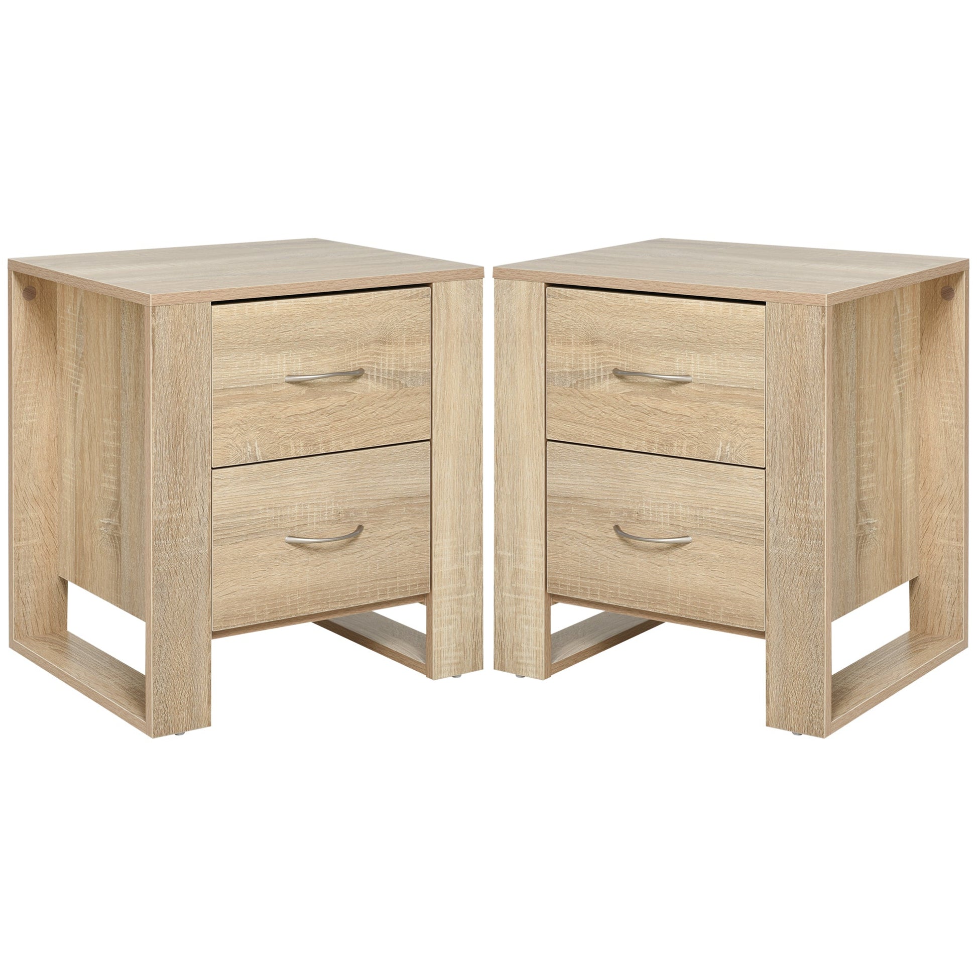 HOMCOM Stolik nocny z 2 szufladami, szafka nocna z uchwytami i podwyższoną podstawą, stolik boczny do sypialni, salonu, zestaw 2 sztuk, brązowy