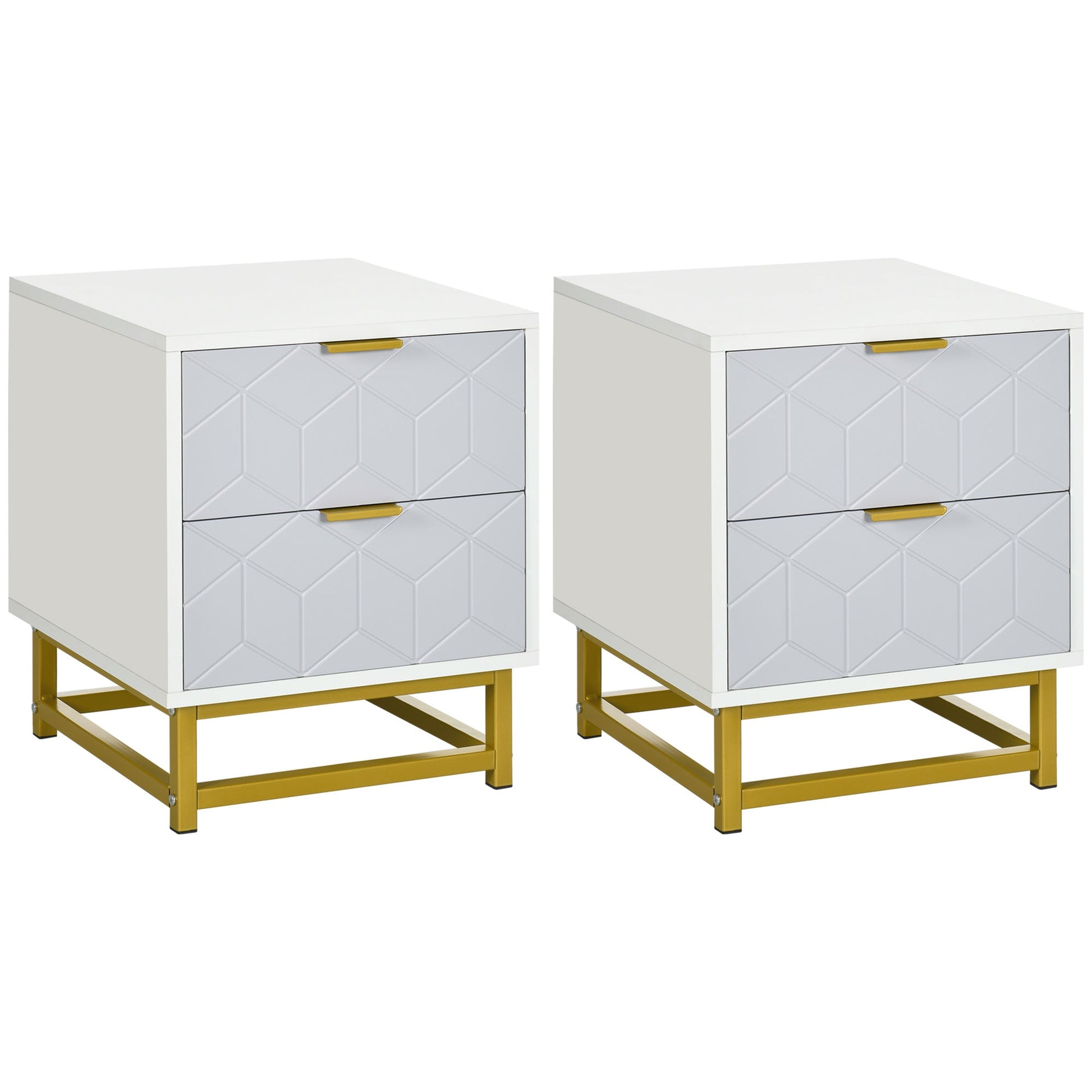 HOMCOM Stolik nocny z 2 szufladami, stolik boczny, szafka nocna ze stalową ramą do salonu, sypialni, zestaw 2 sztuk, szary i biały