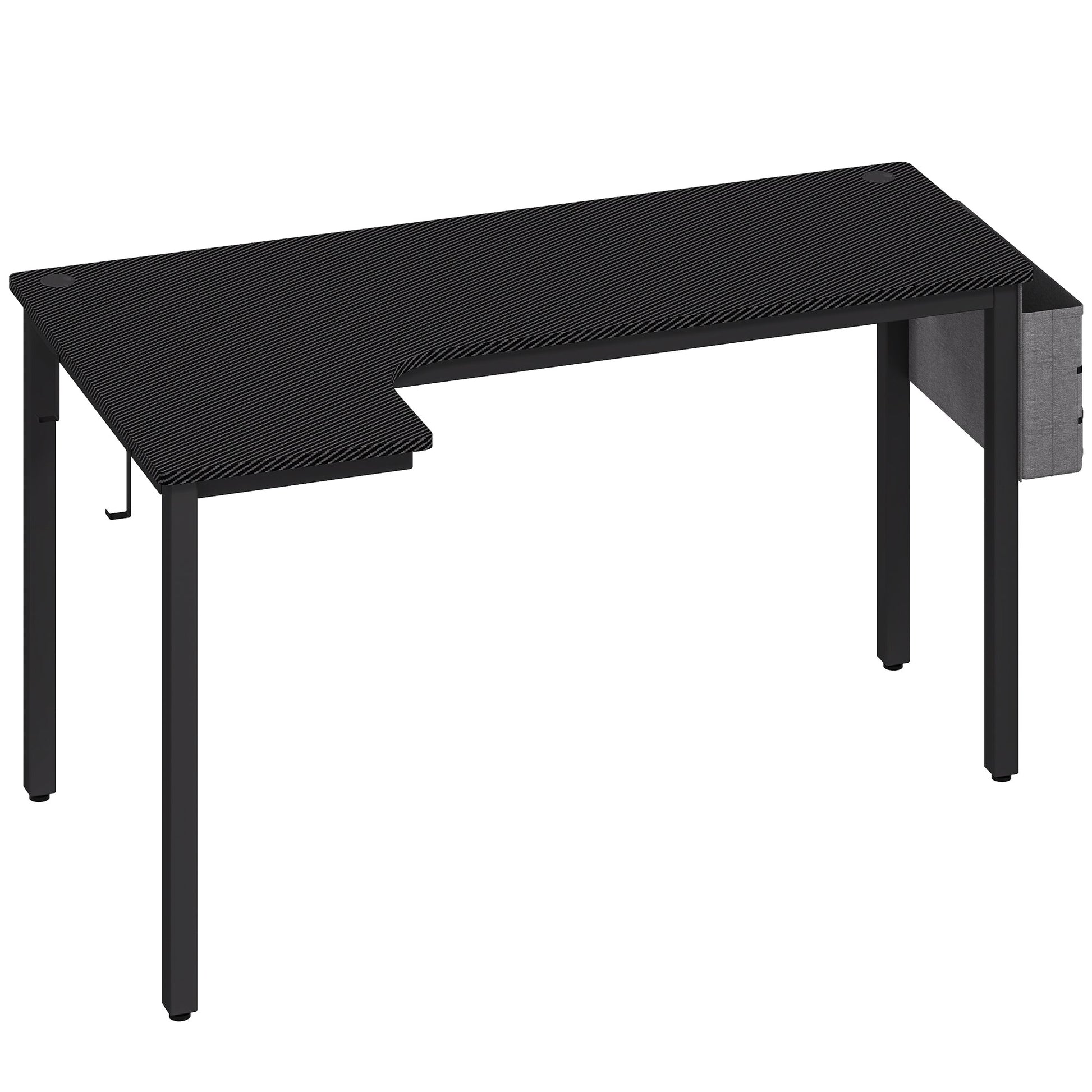 Biurko komputerowe do gier HOMCOM w kształcie litery L z torbą materiałową, haczykami i systemem zarządzania kablami, 145 x 81 x 76 cm - czarne