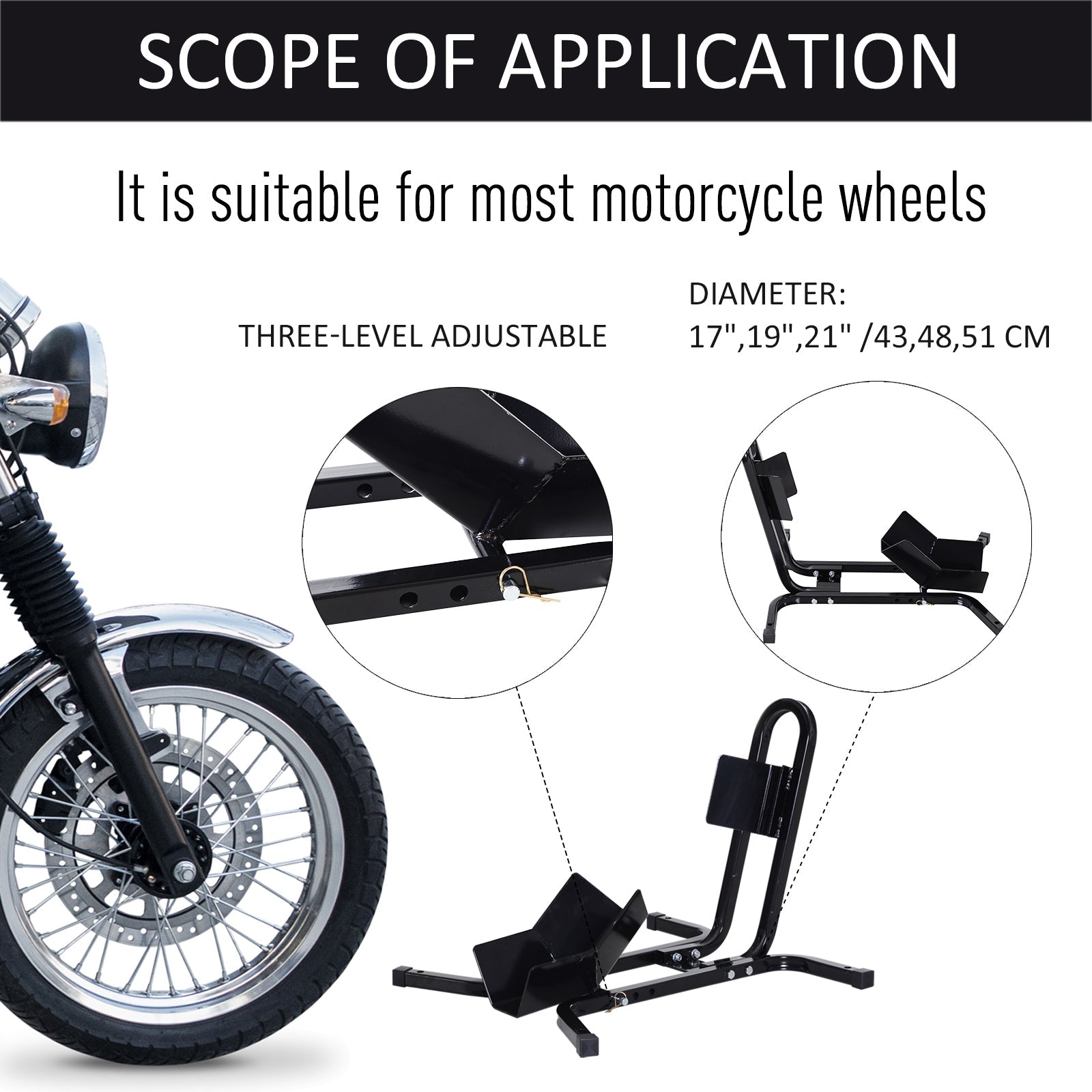- Pasuje do kół motocyklowych: 43,18 cm/48,26 cm/53,34 cm