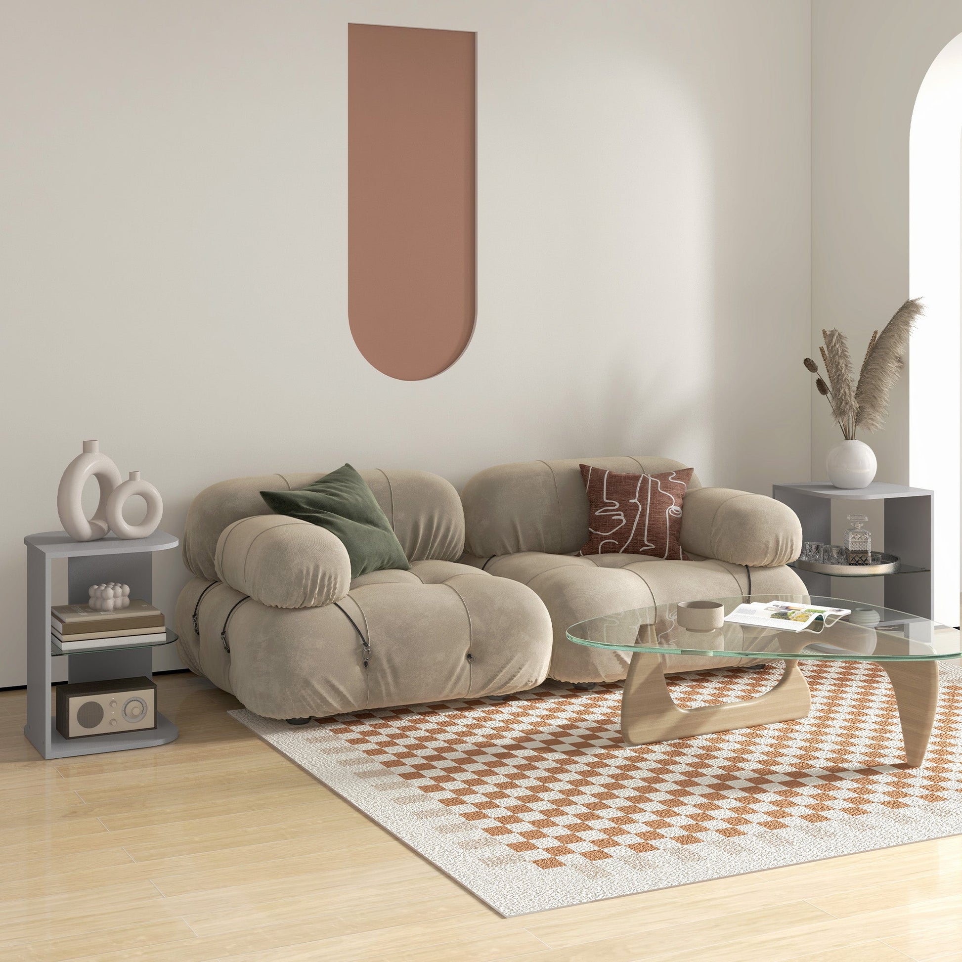 Zakrzywiona, prosta wyrafinowana forma do domu i biura zaczyna się tutaj. Ten stolik narożny firmy HOMCOM to doskonały sposób na odświeżenie przestrzeni przy jednoczesnym zachowaniu porządku. Wykonany z płyty wiórowej dla trwałości, wyposażony jest w środkową szklaną półkę na trzy poziomy przechowywania. Narożny design oznacza, że zmieści się nawet w tych niewygodnych przestrzeniach. Co powiesz na użycie go jako stolika nocnego? Twój nowoczesny dom zaczyna się tutaj.