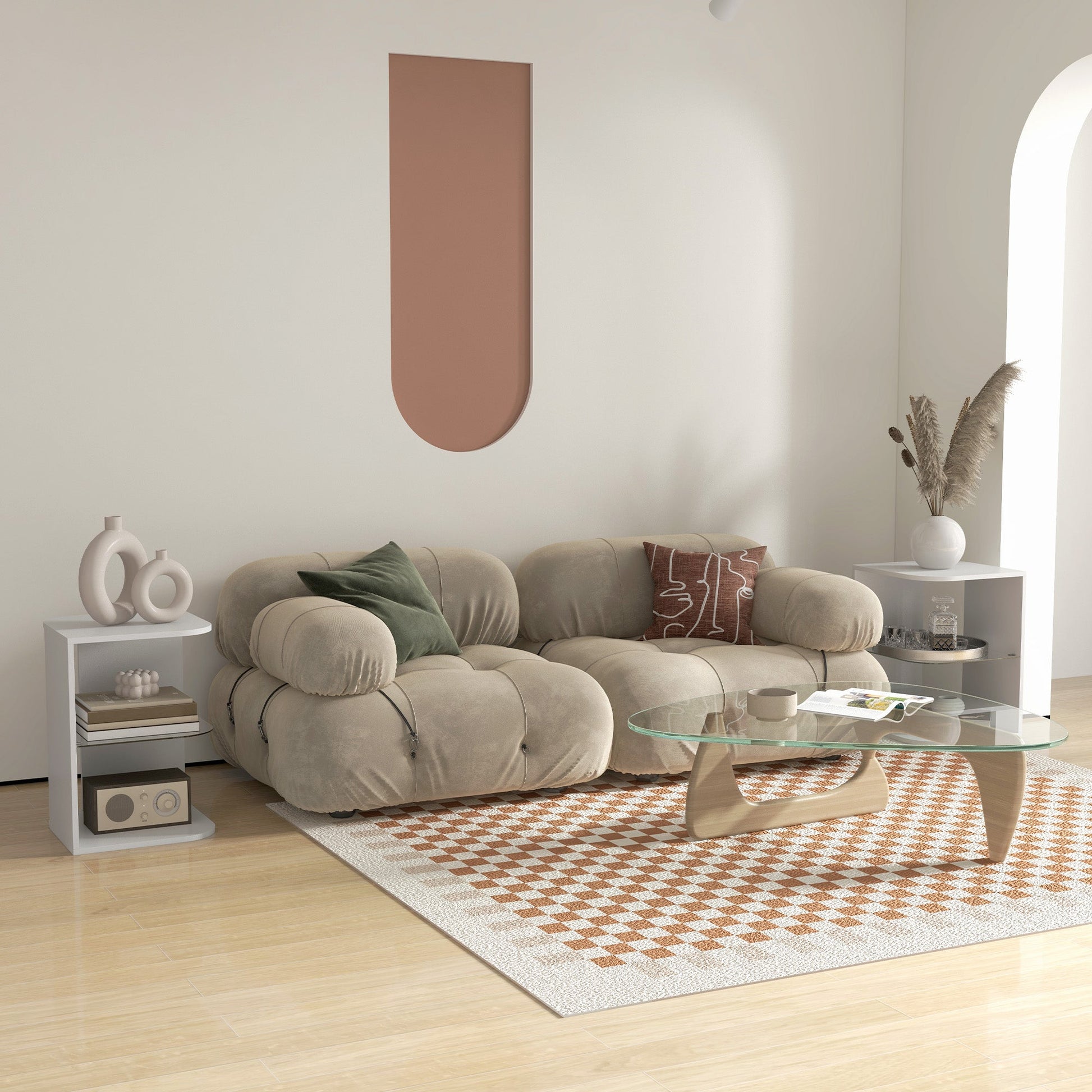 Zakrzywiona, prosta wyrafinowana forma do domu i biura zaczyna się tutaj. Ten stolik narożny firmy HOMCOM to doskonały sposób na odświeżenie przestrzeni przy jednoczesnym zachowaniu porządku. Wykonany z płyty wiórowej dla trwałości, wyposażony jest w środkową szklaną półkę na trzy poziomy przechowywania. Narożny design oznacza, że zmieści się nawet w tych niewygodnych przestrzeniach. Co powiesz na użycie go jako stolika nocnego? Twój nowoczesny dom zaczyna się tutaj.