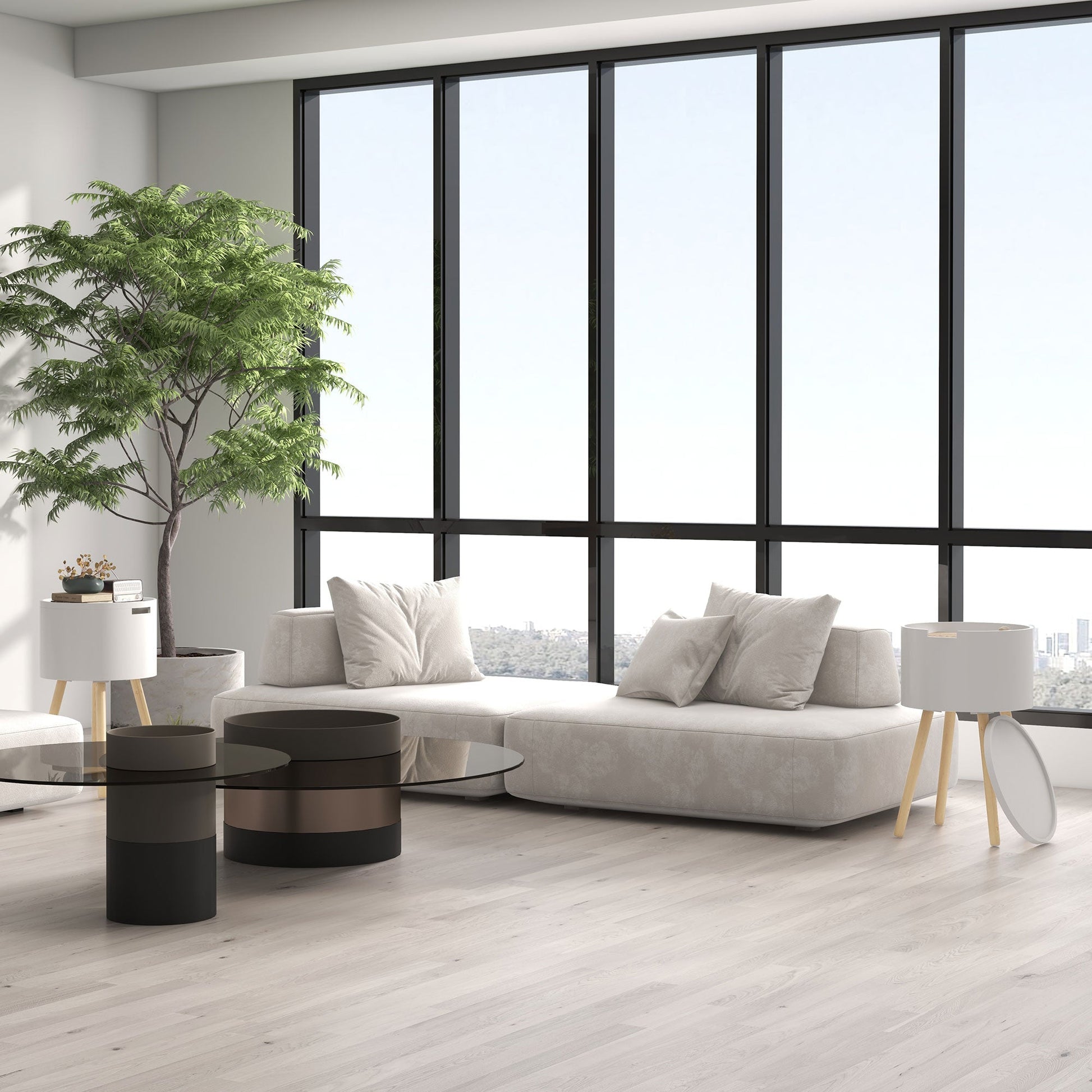 HOMCOM Modern Side Table with Hidden Storage Space, Round Night Stand with Removable Tray Wood Frame End Coffee Table for Living Room, Set of 2, White