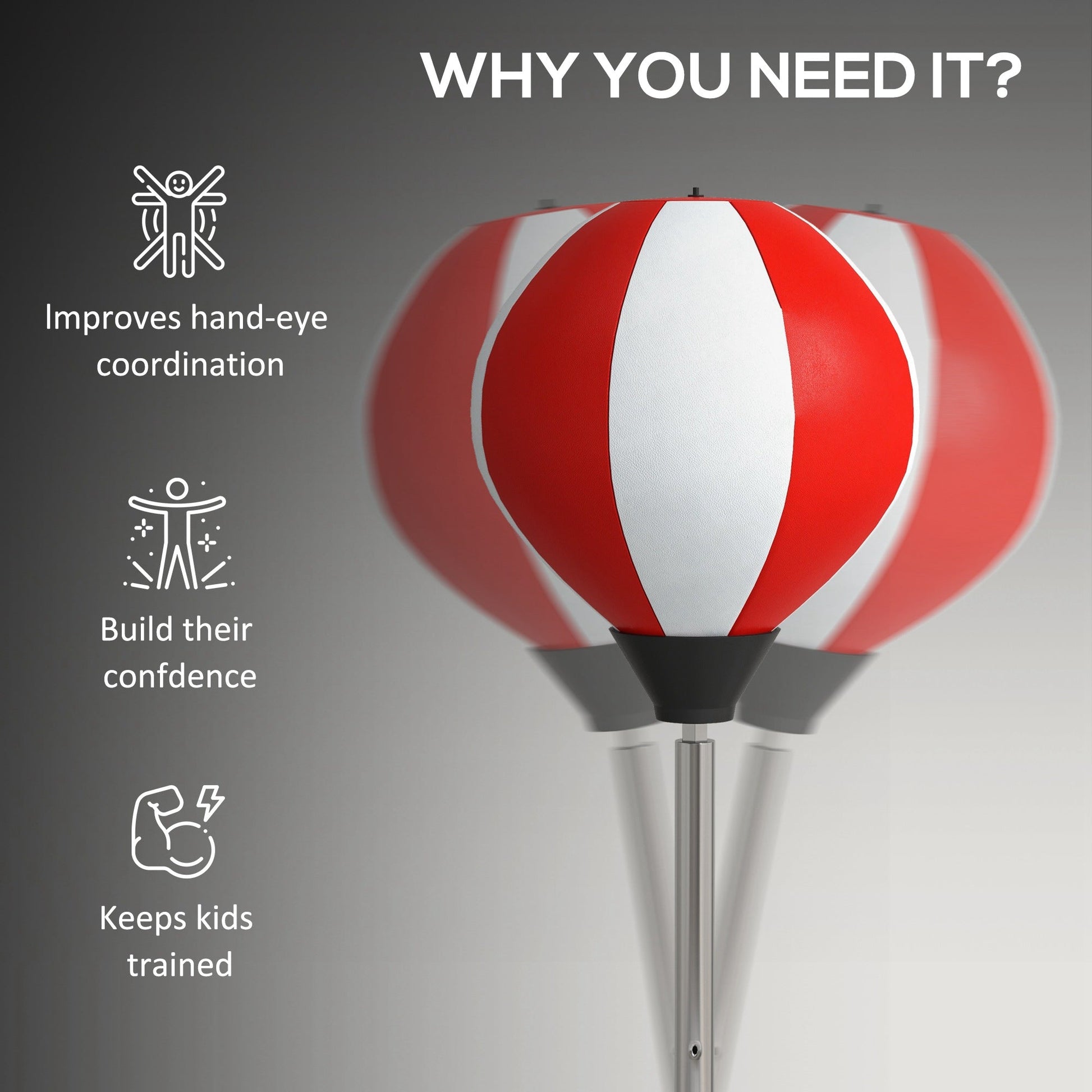 Worek bokserski HOMCOM ze stojakiem, wolnostojący zestaw bokserski, worek treningowy ze speedballem, regulowana wysokość od 126 cm do 144 cm dla nastolatków, czerwony