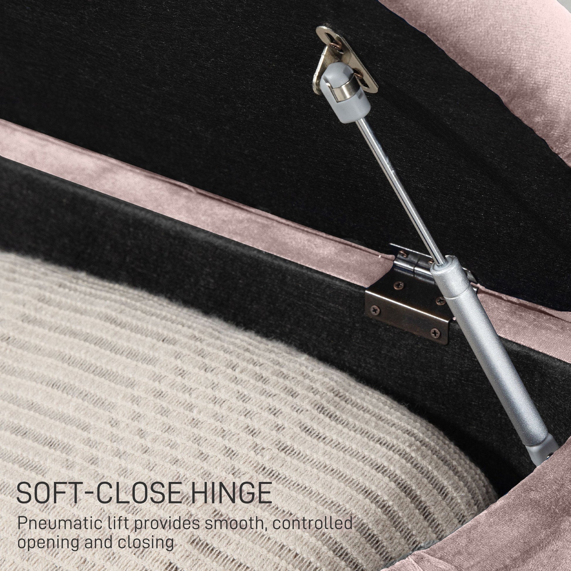Ławka HOMCOM z półokrągłym pufem i schowkiem, ławka na koniec łóżka, pikowany, tapicerowany stołek podnóżkowy z nogami z drewna kauczukowego do sypialni i przedpokoju, 120 x 46 x 42 cm, różowy