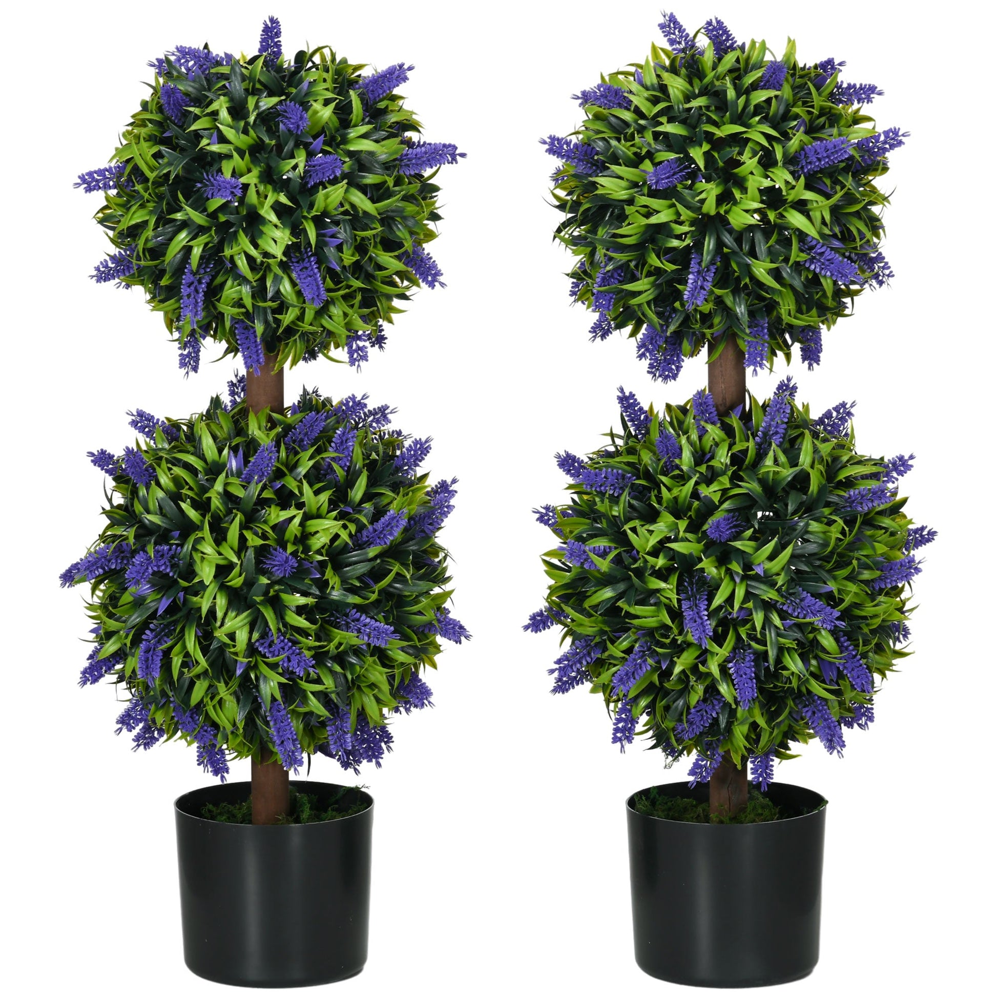 HOMCOM Zestaw 2 sztucznych roślin, kwiaty lawendy, drzewa kuliste z doniczką, do dekoracji domu, wewnątrz i na zewnątrz, 70 cm