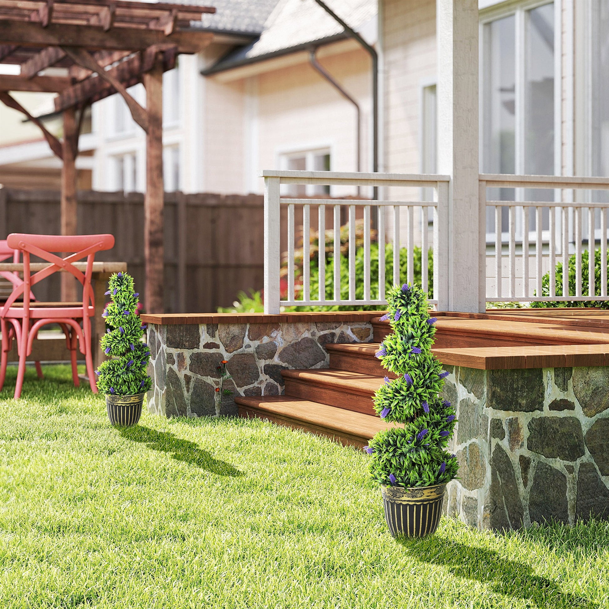 HOMCOM Zestaw 2 dekoracyjnych roślin sztucznych, bukszpan spiralny z drzewem topiary z lawendą i doniczką, sztuczne rośliny do dekoracji domu wewnątrz i na zewnątrz, 90 cm