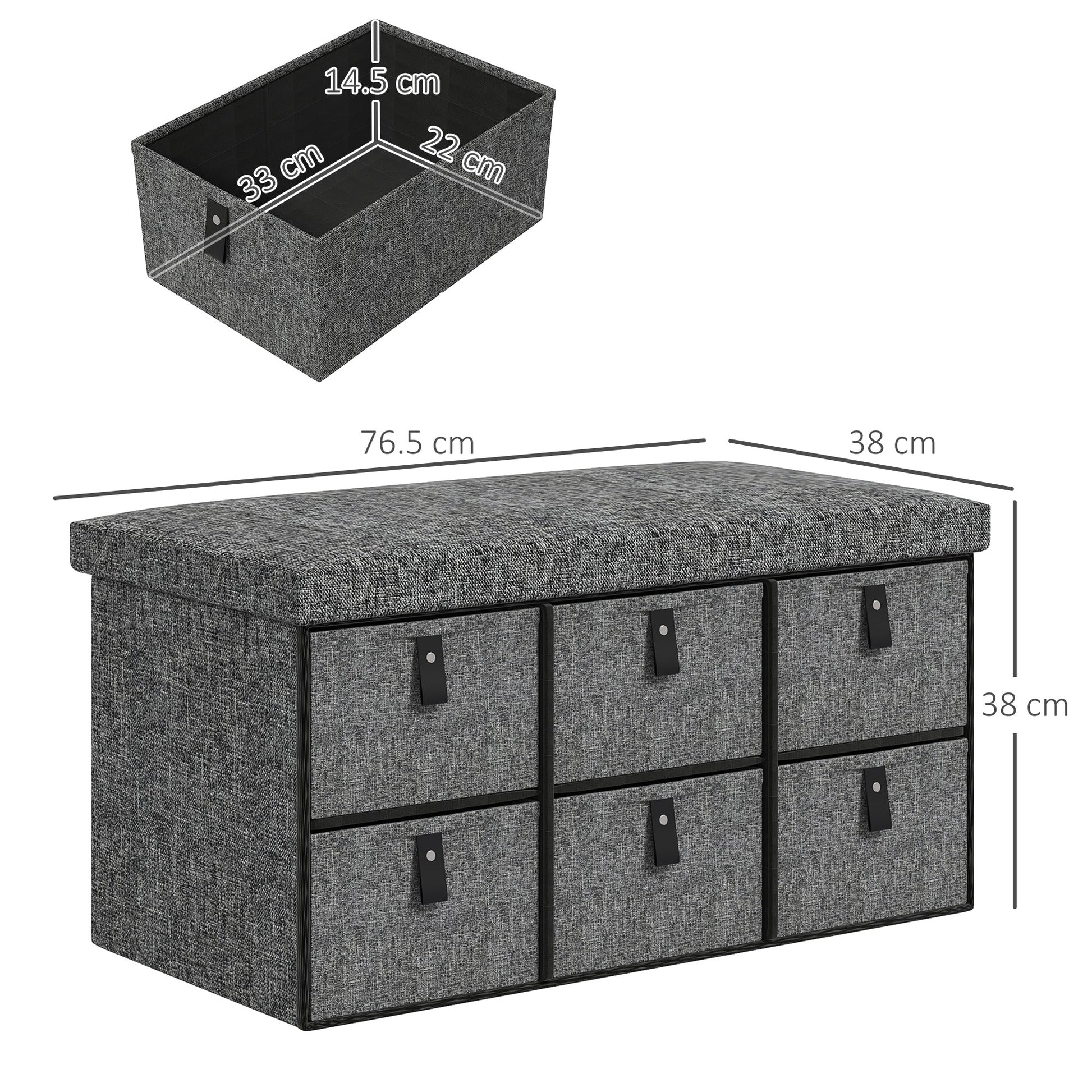 HOMCOM Six-Drawer Shoe Storage Bench, with Padded Top Seat - Dark Grey