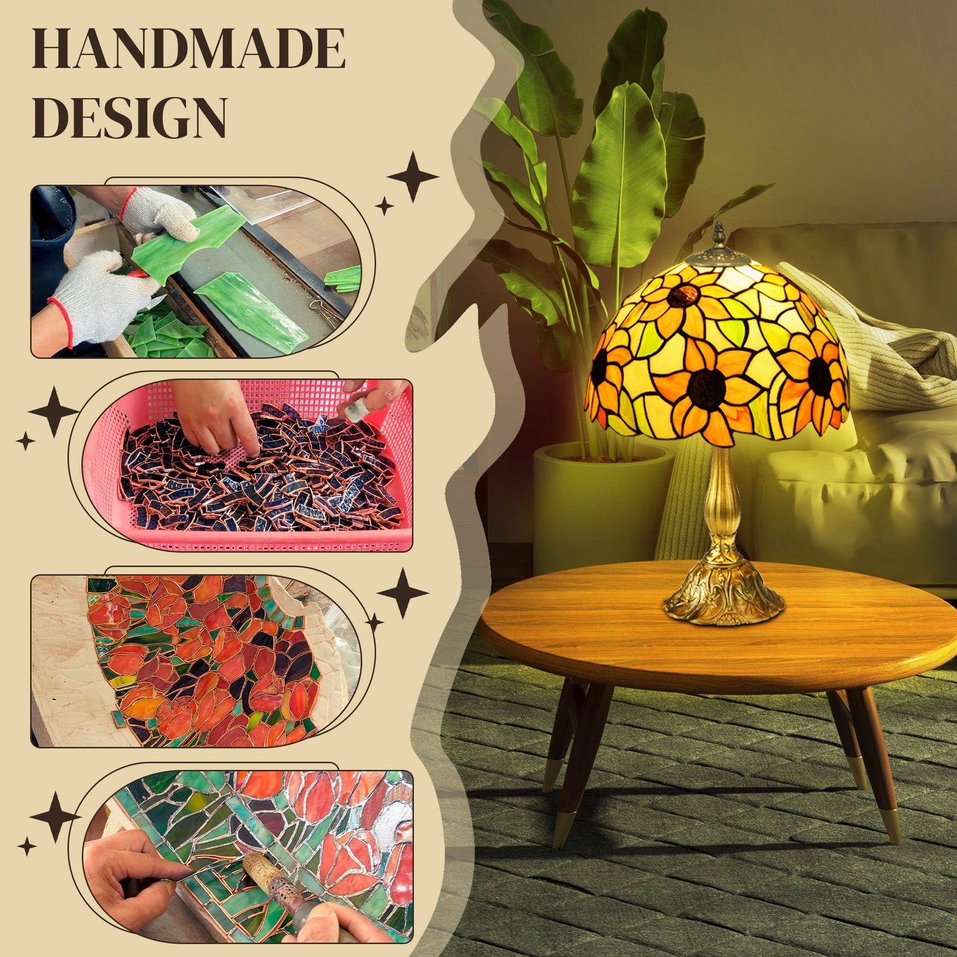 Discover the charm of the HOMCOM Table Lamp, a true piece of art with its stunning sunflower pattern and handcrafted stained glass. Designed by skilled artisans, this bedroom lamp not only illuminates your space but also serves as a beautiful collectible. Whether placed on a bedside table or in your living room, it promises a romantic ambiance and a touch of elegance.