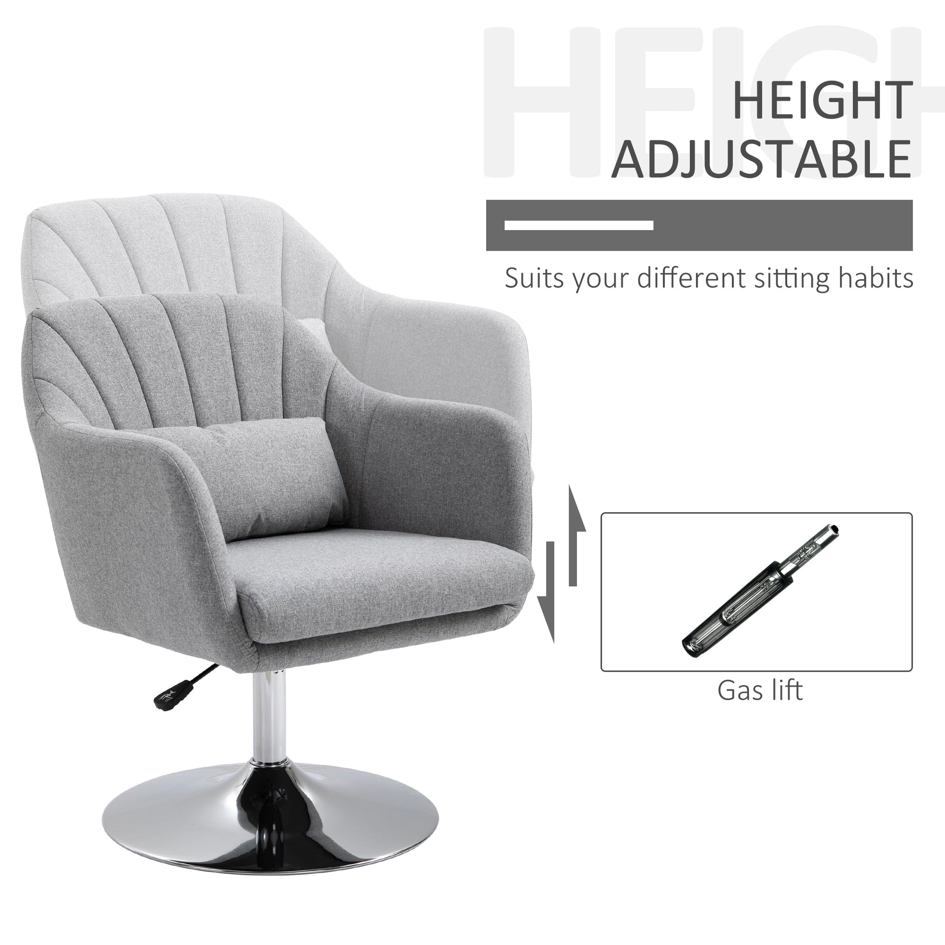HOMCOM Obrotowy fotel akcentowy z tkaniny lnianej do salonu Nowoczesny fotel toaletowy z regulowaną wysokością Gruba poduszka Podparcie lędźwiowe Podłokietnik do sypialni Biuro Jasnoszary